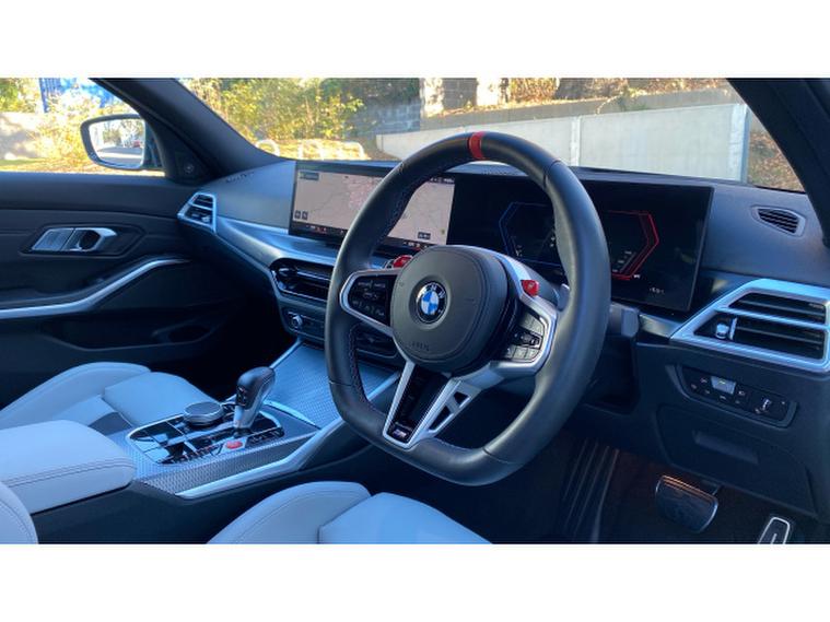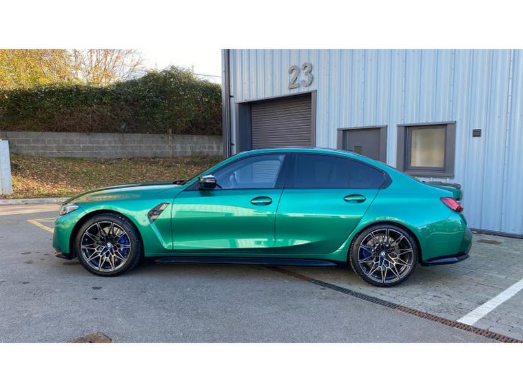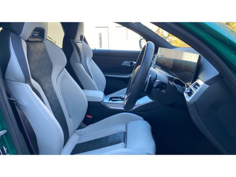 BMW M3 xDrive Competition M 4dr Step Auto Petrol Saloon, , A legend reborn. The BMW M3 has been the benchmark of performance saloons for over three decades, and the M3 Competition takes this heritage to new heights. Finished in breathtaking Isle of Man Green Individual paint, this example is as striking as it is powerful. Step inside and youre greeted by the luxurious Silverstone leather interior, crafted to deliver both comfort and sport-inspired elegance. The driving experience is enhanced by the immersive Harman Kardon sound system, ensuring every journey excites all the senses.