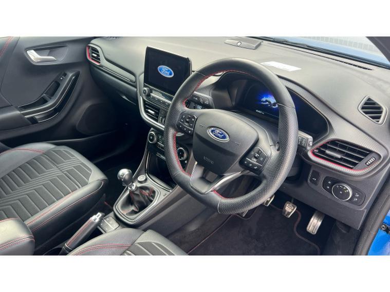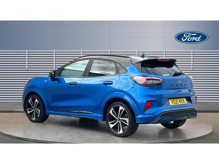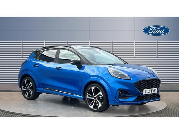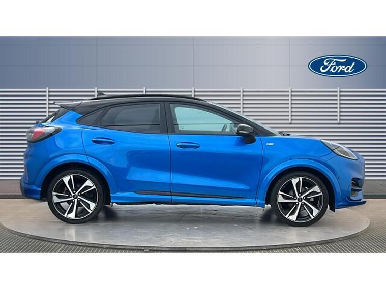 Ford Puma 1.0 EcoBoost Hybrid mHEV 155 ST-Line X 5dr Petrol Hatchback, , Gloucester Ford have this 2 owner from new Ford Puma mHEV 155 ST-Line X finished in Desert Island Blue. This Puma ST-Line X in striking Desert Island Blue is a brilliant example of how modern design, clever technology, and energetic performance can come together in a compact SUV. Its bold, athletic styling immediately catches the eye, and the vibrant Desert Island Blue paintwork enhances its dynamic presence. The 19-inch diamond-cut alloy wheels give the car an unmistakably premium and sporty edge, perfectly complementing the ST-Line Xs sculpted lines and confident stance. Underneath its stylish exterior, the mild-hybrid 155PS powertrain provides an impressively smooth and responsive drive. The mHEV system adds an extra boost of torque when needed, improving both performance and efficiency. Whether youre cruising along open roads or navigating busy urban traffic, the Puma feels lively, composed, and enjoyable to drive. The ST-Line X suspension tuning further sharpens the handling, giving the car a precise, agile feel that sets it apart from many others in its class. Inside, the cabin offers a blend of comfort, technology, and thoughtful touches. Fords SYNC 3 infotainment system provides a crisp, intuitive interface for navigation, media, and connectivity, ensuring that every journey is both connected and convenient. The heated front windscreen is a particularly practical feature, making frosty mornings far easier by clearing ice and mist within seconds. Parking and manoeuvring are made stress-free thanks to the front and rear sensors paired with a clear, reliable rear-view camera. These features provide excellent visibility around the vehicle, giving you confidence in tight parking spaces or busy areas. Overall, the Ford Puma mHEV 155 ST-Line X in Desert Island Blue is an outstanding choice for drivers seeking a sporty, well-equipped, and efficient compact SUV. It delivers a perfect balance of style, practicality, and fun, making every drive something to look forward to.