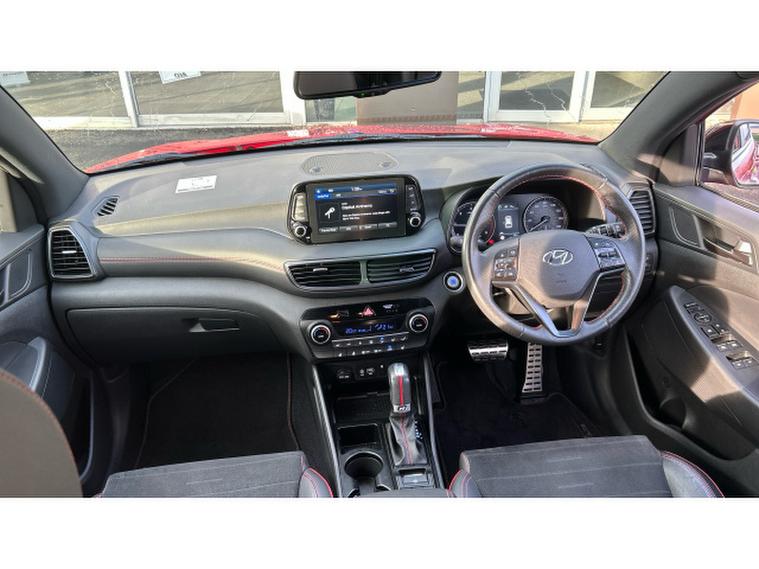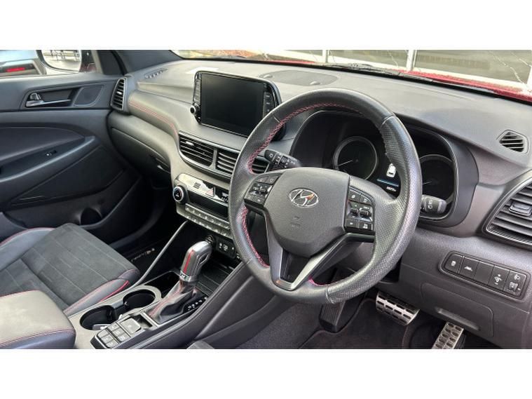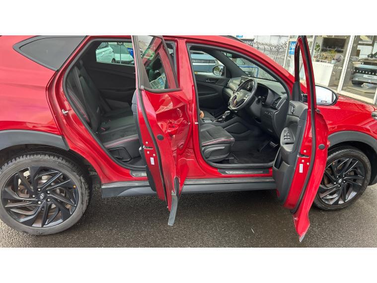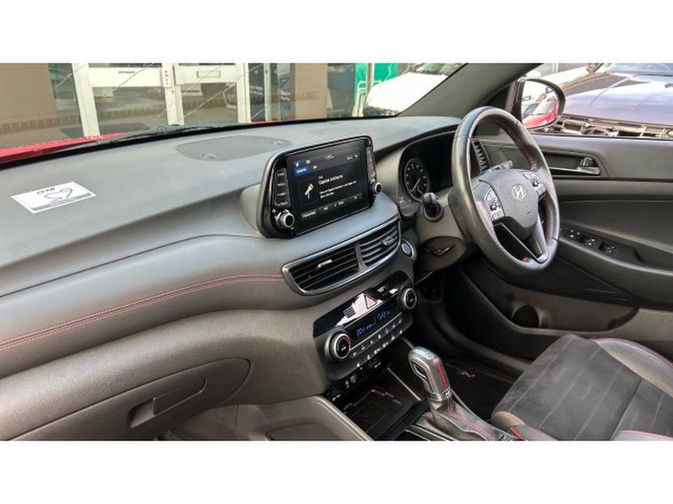 The N Line trim gives the Tucson a sporty edge with 19-inch alloy wheels, gloss-black styling details, and sport-inspired interior finishes. Inside, the cabin is comfortable and well-equipped, featuring a touchscreen infotainment system, heated front seats, and quality materials throughout.