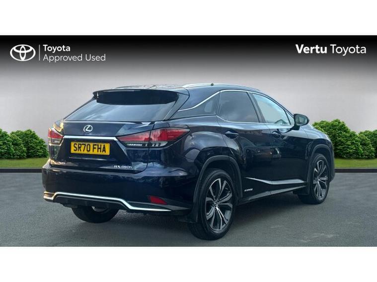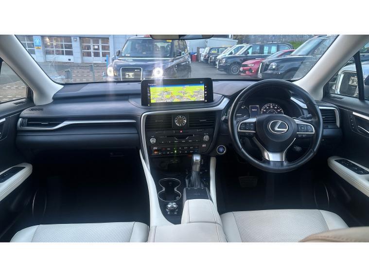 Lexus RX 450h 3.5 5dr CVT Hybrid Estate, , This 2020 Lexus RX 450h offers a refined driving experience with its advanced 3.5L petrol hybrid engine and Four Wheel Drive system, ensuring confident handling in various conditions. As a Euro 6 compliant vehicle, it meets stringent emission standards. Inside, you'll find convenient features such as Bluetooth mobile phone connectivity, a wireless smartphone charger, and a reversing camera with back guide lines to assist with parking. The smart keyless entry adds to the ease of use, while the dual zone climate control air conditioning system, complete with S Flow and Nanoe technology, ensures a comfortable cabin environment for all occupants.