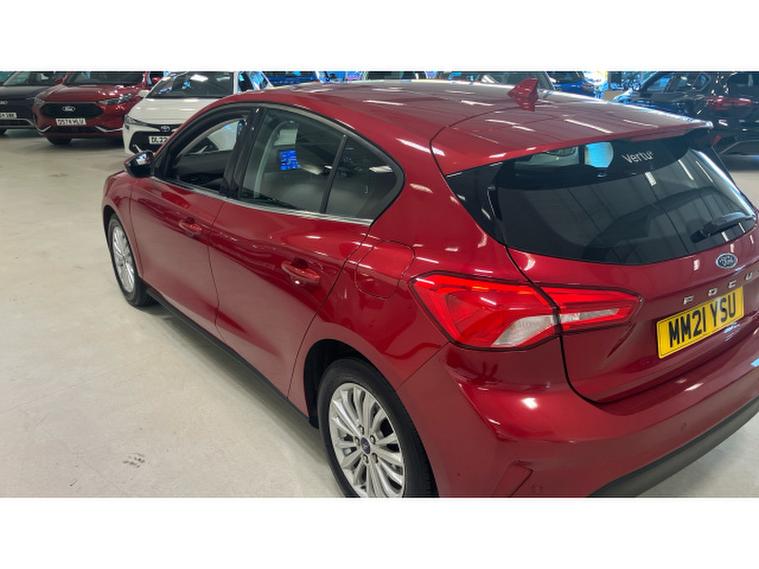 Ford Focus 1.0 EcoBoost Hybrid mHEV 125 Titanium Edition 5dr Petrol Hatchback, , The Ford Focus is a perfect size family car and perfect for a driver looking for comfort, reliability, economy and safety. finished in metallic red. Feature highlights include alloy wheels, metallic paint, parking sensors, climate control, air con, Apple Car Play, Bluetooth, DAB radio, heated seats, Sat Nav and much more. The car has 5 seats, 5 doors, with a mileage of 39951 miles. It was registered in 2021 on a 21 plate, has a 1.0 petrol engine and a Manual gearbox. This vehicle has been very well maintained by its previous owner. This car also has a documented Service History.