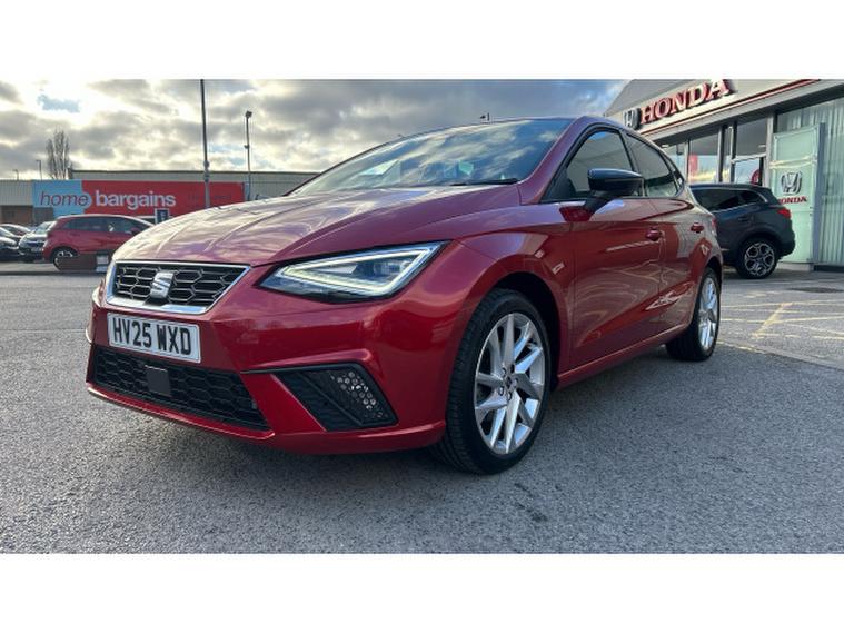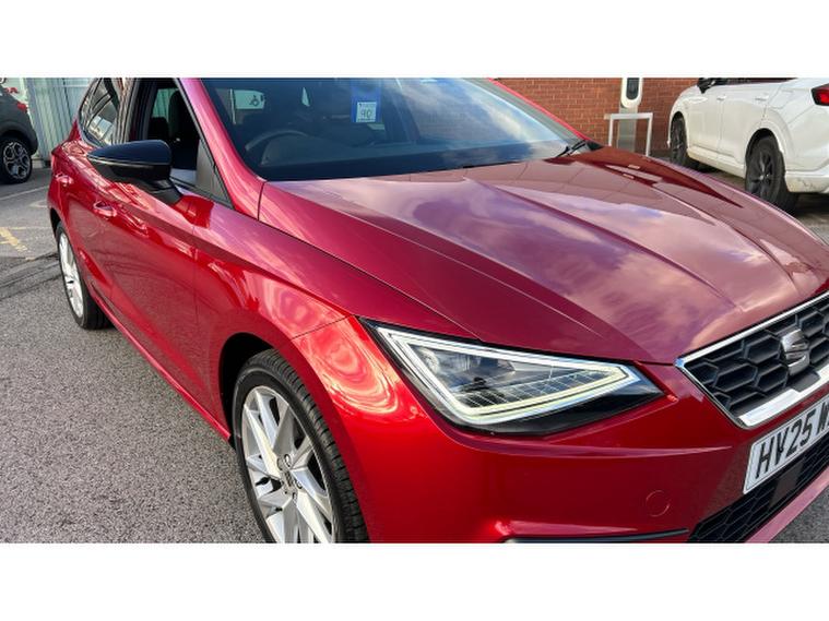 SEAT Ibiza 1.0 TSI 115 FR 5dr Petrol Hatchback, , The 2025 seat ibiza 1.0 tsi 115 fr is a fresh, stylish and punchy supermini that puts fun, practicality and modern technology into a compact, city-friendly package. if you want a hatchback that feels lively, looks sharp and remains easy to live with this might be one of the smartest choices around. behind the wheel you get a peppy 1.0-litre turbocharged petrol engine pushing 115 ps, delivering smooth, lively acceleration and a top speed of around 123 mph. its surprisingly brisk for a car this size calling 062 mph in roughly 9.7 seconds yet efficient enough to keep running costs reasonable, with WLTP-rated fuel consumption around 48.751.4 mpg depending on driving style. the exterior styling is sporty and confident. the FR trim dresses the Ibiza in 17 alloy wheels, full-LED lights, dark tinted rear windows, black mirror caps and distinct FR badging giving it a premium hatchback presence that stands out without feeling flashy. overall, the 2025 seat ibiza 1.0 tsi 115 fr is a brilliant all-rounder: sporty enough to enjoy behind the wheel, practical enough for everyday life, and stylish enough to stand out. its a really strong option if youre after a modern, efficient, well-equipped hatchback that doesnt compromise.