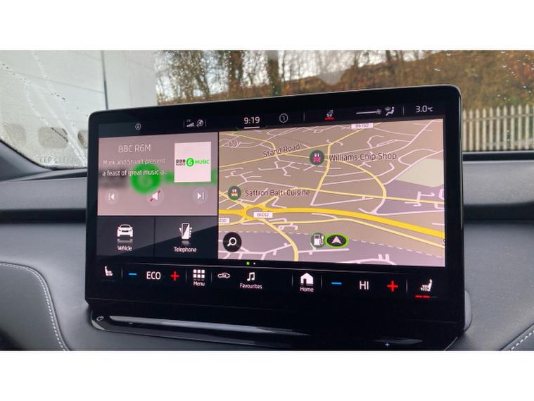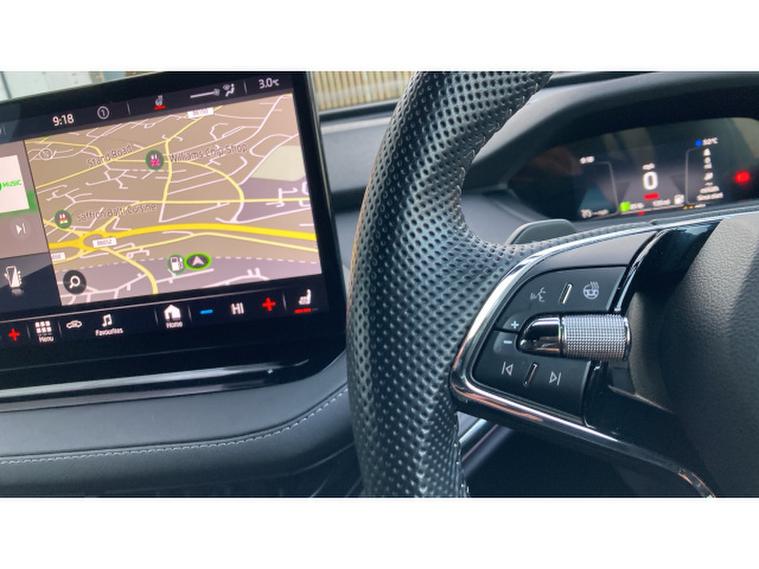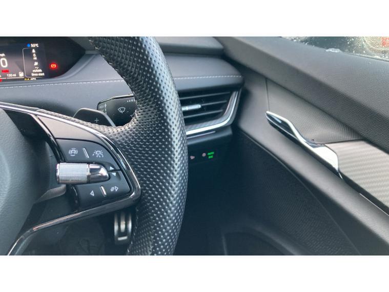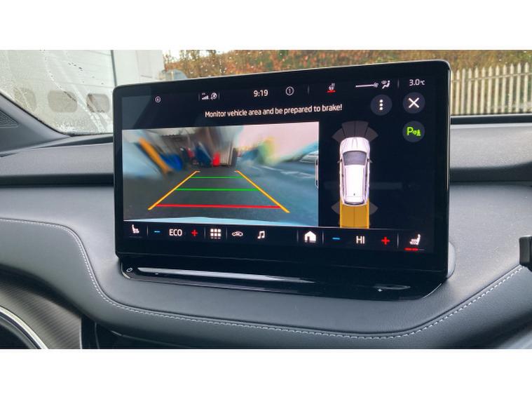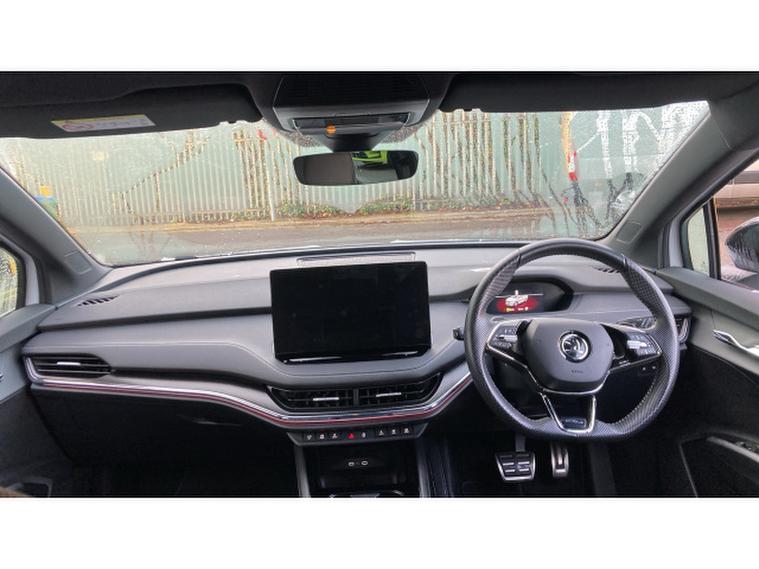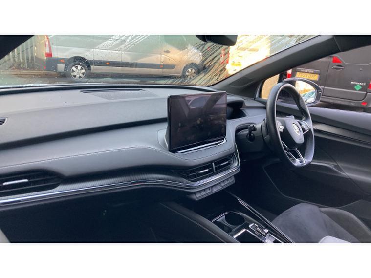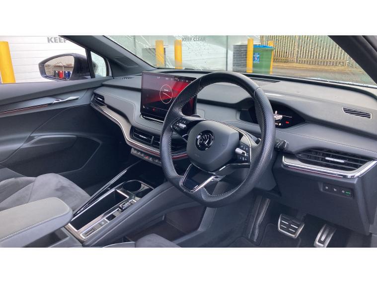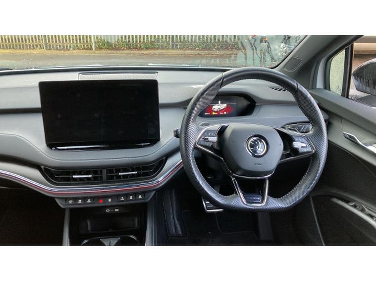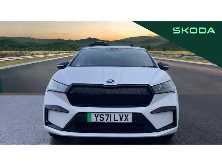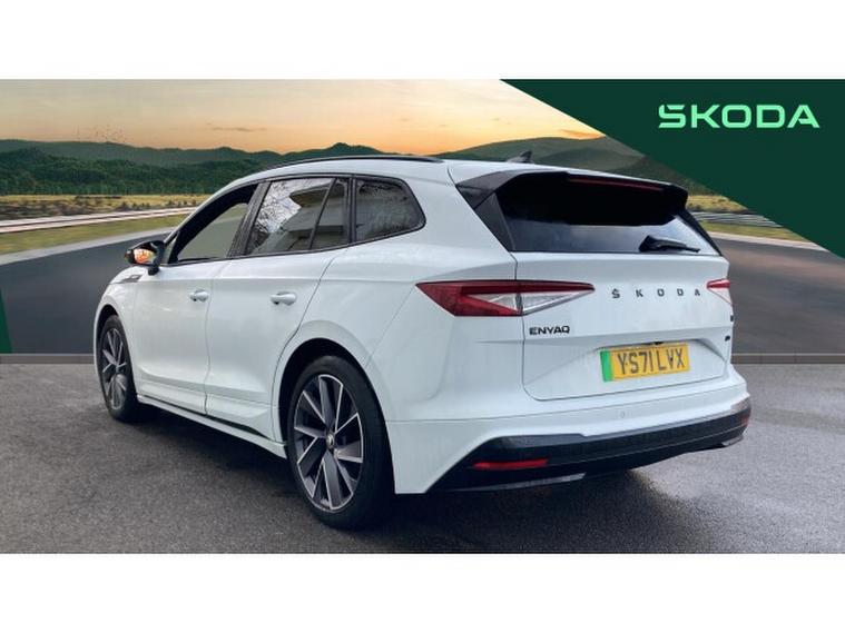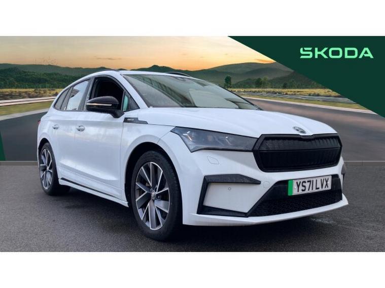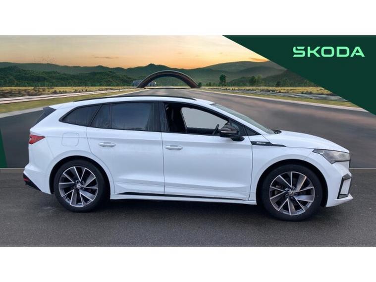Skoda Enyaq 195kW 80x Sportline 82kWh 4x4 5dr Auto Electric Estate, , The 2021 Enyaq iV 80x Sportline is the most powerful variant in its range: it delivers a combined output of 195 kW (≈, , 265 PS) and 425 Nm of torque, thanks to dual electric motors one at the rear and one at the front giving it full all-wheel drive.The SportLine trim gives the Enyaq a distinctive aesthetic and a more engaging driving stance. It comes with black exterior detailing: window frames, roof rails, diffuser and even model-badges are finished in black for a more purposeful, dynamic look.Ride and handling are sharpened, too: a lowered sports-chassis (15 mm lower front, 10 mm rear) improves the centre of gravity for tighter handling and a firmer, more composed ride compared with standard-spec SUV suspension.