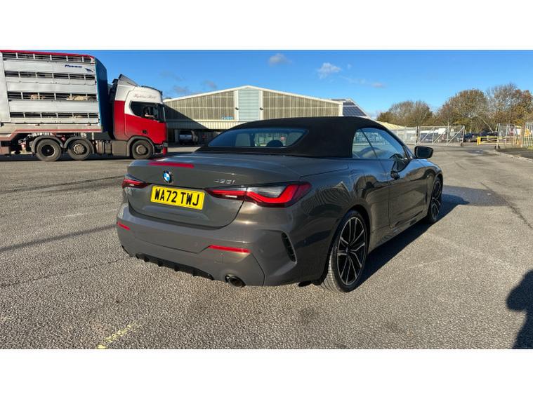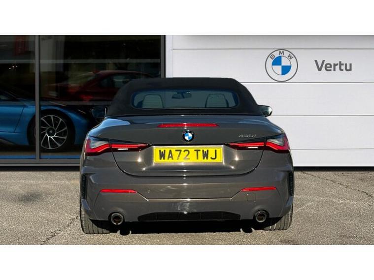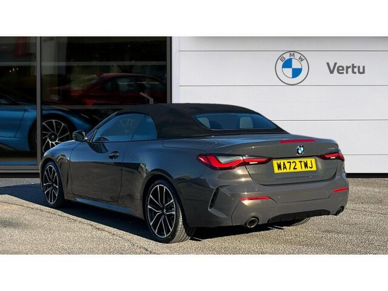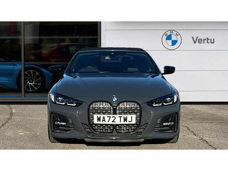 BMW 4 Series 430i [245] M Sport Pro Edition 2dr Step Auto Petrol Convertible, , Presenting the exquisite 2022 BMW 430i M Sport Pro Edition Convertible, finished in the sophisticated shade of Dravit Grey and complemented by a luxurious Black Vernasca Leather interior with elegant Grey Contrast Stitching. With just 43, 480 miles, this striking convertible perfectly blends dynamic performance with refined comfort, offering an exceptional open-top driving experience that captures the spirit of BMW engineering. When purchasing from Vertu BMW Exeter, you can enjoy complete peace of mind knowing that all our Approved Used BMWs come with 12 Months BMW Approved Warranty, 12 Months BMW Roadside Assistance, 12 Months MOT, and a full service history. Every vehicle is thoroughly inspected by our manufacturer-trained technicians, ensuring it meets the highest standards of quality, performance, and safety. Choosing Vertu BMW Exeter means benefiting from expert knowledge, genuine BMW parts, and a commitment to excellence that continues long after you drive away. To discover more about this stunning 430i M Sport Pro Edition, simply contact our dedicated team who will be delighted to provide you with a personalised video presentation, showcasing the cars standout features and answering any questions you may have. Highlights of this impressive model include a heated steering wheel for added comfort on cooler days, a Parking Assistant for effortless manoeuvring, and Cruise Control to make long journeys smooth and relaxing. Combining sporty elegance with everyday usability, this BMW 430i M Sport Pro Edition Convertible offers the ultimate blend of style, innovation, and driving pleasure. Contact Vertu BMW Exeter today to experience it for yourself.