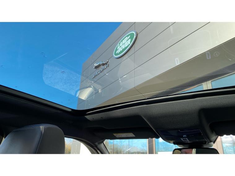 Its Silicon Silver finish, paired with a black contrast roof and privacy glass, gives the Evoque an unmistakably premium and athletic stance. The fixed panoramic sunroof floods the cabin with natural light, while the gloss black strata veneer adds a modern, sophisticated touch to the interior.