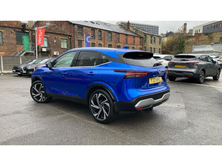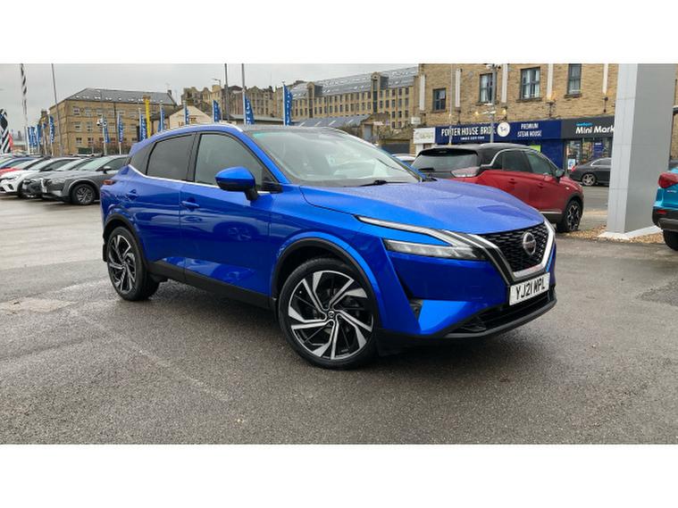 Nissan Qashqai 1.3 DiG-T MH 158 Tekna+ 5dr Xtronic Petrol Hatchback, , The 2021 Nissan Qashqai 1.3 DiG-T MH 158 Tekna+ 5dr Xtronic stands as a refined and well-rounded compact SUV, seamlessly blending performance, comfort, and advanced technology. Building upon the solid foundation of the Qashqai lineage, the Tekna+ trim elevates the driving experience with a host of premium features and enhancements. At the heart of this model lies a 1.3-litre turbocharged petrol engine, delivering 158 horsepower and coupled with Nissan's Xtronic automatic transmission. This combination ensures a responsive and smooth driving experience, whether navigating urban streets or cruising on the motorway. The mild-hybrid system contributes to improved fuel efficiency and reduced emissions, aligning with contemporary environmental standards. The exterior design of the Qashqai Tekna+ is both modern and dynamic, featuring sharp lines and a bold front grille that commands attention. The inclusion of 19-inch alloy wheels and LED lighting elements further accentuates its premium appeal. Inside, the cabin is a testament to Nissan's commitment to quality and comfort. Premium materials are used throughout, and the seats are upholstered in high-quality leather, providing both support and luxury. The panoramic glass sunroof adds an airy feel to the interior, enhancing the overall driving ambiance. Technologically, the Qashqai Tekna+ is equipped with an array of features designed to enhance convenience and safety. The 12.3-inch digital driver's display offers customizable information at a glance, while the 9-inch Nissan Connect touchscreen infotainment system supports Apple CarPlay and Android Auto, ensuring seamless connectivity. Advanced driver assistance systems, including Pro PILOT with Navi-Link, intelligent emergency braking, and a 360-degree camera system, contribute to a safer and more relaxed driving experience.