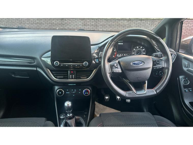 Ford Fiesta 1.0 EcoBoost 125 ST-Line 5dr Petrol Hatchback, , Vertu Ford Durham are delighted to have this great looking Ford Fiesta ST-Line 5 door finished in magnetic grey metallic paint, which has some great factory options such as 18 inch 5 spoke ST-Line alloy wheels, rear privacy glass, a spre wheel and a CD Player. With only 2 owners from new this car also has a full service history and has been very well maintained. All our vehicles at Vertu Motors come fully prepared with our peace of mind Main Dealer guarantee. Every vehicle is fully prepared both mechanically and cosmetically up to the highest standard which even includes having any tyre replaced that has less than 3mm tread depth (legal limit is 1.6mm). Every vehicle will have a minimum of 9 months MOT remaining and you will not have to service the vehicle for at least 6 months or 6000 miles. We ensure that you will have a minimum of 2 keys and to give you even further reassurance we also supply you with a 3 months complimentary warranty and a 14-day money back guarantee. Our vehicles also come with a full HPI vehicle check assuring you that your new vehicle will have no registered accident claims reported, or any outstanding finance, it also shows the vehicle has not been imported. In addition to this we also do a full Government VOSA report check to verify the mileage on all cars over 3 years old. This service comes free of charge to all our customers unlike other main dealers who charge you an admin fee for this service. We also offer nationwide delivery on all our vehicles, so call today to arrange a viewing.