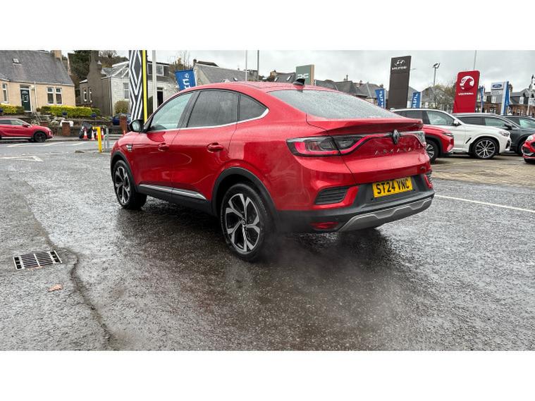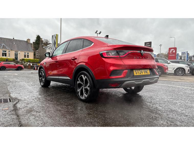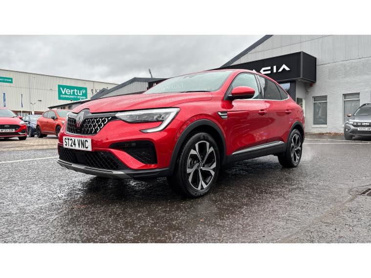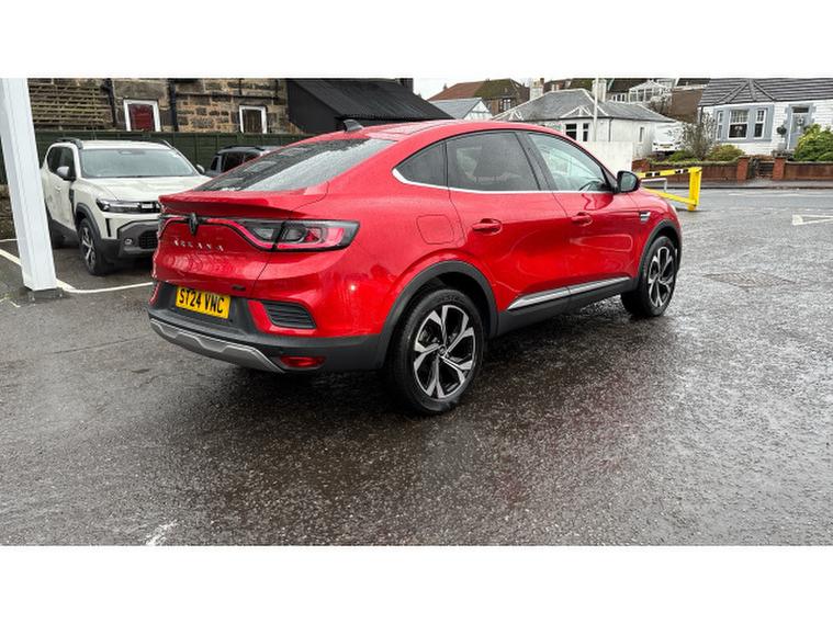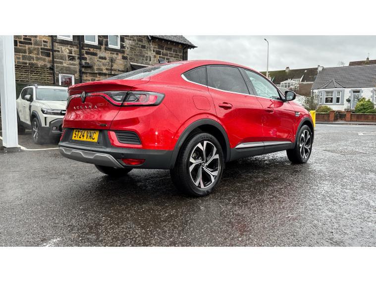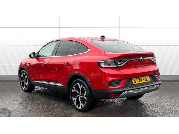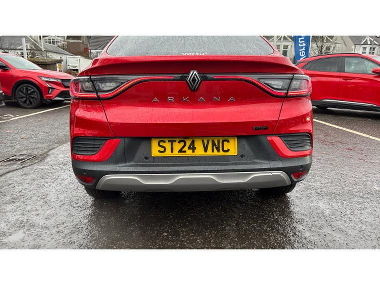 Renault Arkana 1.6 E-Tech FHEV 145 Techno 5dr Auto Hybrid Estate, , This Renault Arkana Estate 1.6 E-TECH Full Hybrid (FHEV) 145 Techno Auto, finished in vibrant Flame Red and with just under 12, 000 miles on the clock, offers a refined, efficient and stylish drive with all the practicality of a crossover coupe. The self-charging hybrid powertrain seamlessly blends a 1.6-litre petrol engine with electric motors to deliver smooth acceleration, excellent fuel economy and low emissions. The Techno trim elevates the experience with features including a 9.3-inch EASY LINK touchscreen with navigation, Apple CarPlay and Android Auto, a 10.2-inch digital instrument cluster, ambient lighting, part-leather heated seats and premium upholstery, dual-zone automatic climate control, parking sensors and a reversing camera, plus a suite of modern driver-assistance systems. With its coupe-inspired roofline, spacious boot, and bold red finish, this Arkana FHEV Techno offers a striking combination of elegance, efficiency and everyday usability. A personalised video presentation is available on request.