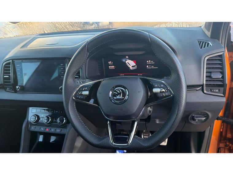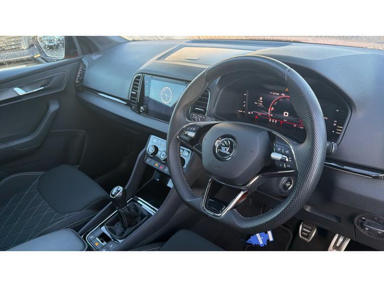 Step inside and youre greeted by a cabin that oozes confidence. The Sportlines signature black interior, supportive sports seats and bold stitching create an unmistakable performance vibe. But its the technology that really elevates the experience. A crisp sat nav system keeps you perfectly on course, while front and rear parking sensors ensure every manoeuvre is stress-free. Settle into the motorway with cruise control, sit back, and let the Karoq glide effortlessly mile after mile.