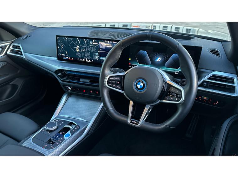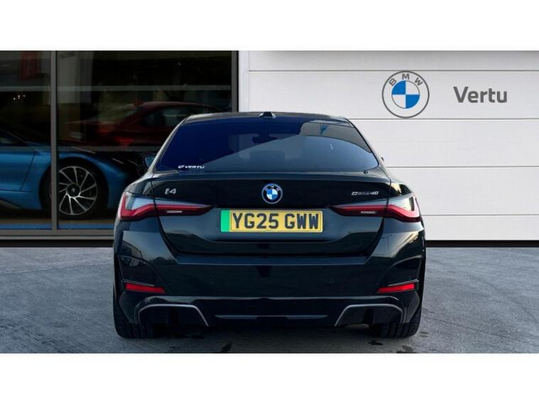 BMW i4 250kW eDrive40 M Sport 83.9kWh 5dr Auto Electric Hatchback, , Presented here is a superb 2025 BMW i4 eDrive40 M Sport, finished in elegant Black Sapphire and complemented by a refined Black interior featuring Black Perforated Sensatec seats. With only 8, 443 miles, this all-electric Gran Coup blends dynamic performance, impressive range, and unmistakable BMW craftsmanship, offering a driving experience that is both exhilarating and effortlessly smooth. When purchasing from Vertu BMW Exeter, you can enjoy complete peace of mind, as every Approved Used BMW includes 12 Months BMW Approved Warranty, 12 Months BMW Roadside Assistance, 12 Months MOT, and a full service history. Each car is thoroughly checked and prepared by our manufacturer-trained technicians who ensure the vehicle meets BMWs exacting standards for quality, safety, and reliability. Choosing Vertu BMW Exeter means benefitting from expert guidance, exceptional customer care, and trusted aftersales support long after you drive away. If you would like a closer look at this impressive i4, simply contact our dedicated team who will be delighted to provide a personalised video presentation tailored to you. We can walk you through the cars condition, features, and controls while answering any questions you may have, helping you feel fully informed and confident before making your decision. This i4 eDrive40 M Sport also comes equipped with a range of standout features designed to enhance comfort, convenience, and safety. Heated front seats provide year-round comfort, while the Driving Assistant system offers intelligent support during every journey. An electric bootlid adds effortless practicality, making everyday use smoother and more refined. Discover the perfect blend of innovation and performance with this exceptional BMW i4 at Vertu BMW Exeter.
