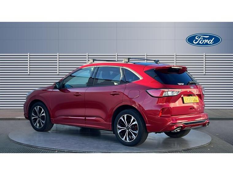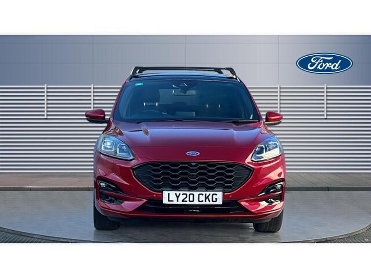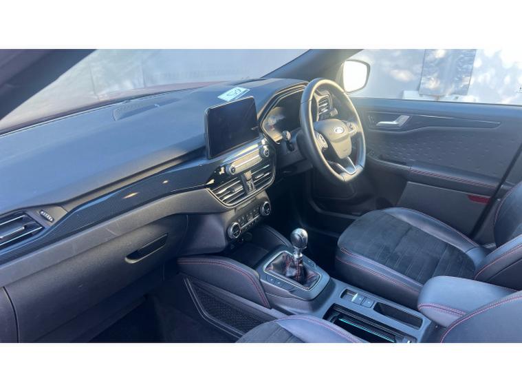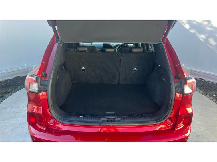 Its bold red exterior, complemented by the athletic ST-Line X styling, gives the Kuga a confident and sporty road presence. The addition of a stunning panoramic roof fills the cabin with natural light, enhancing the sense of space and luxury for both driver and passengers.