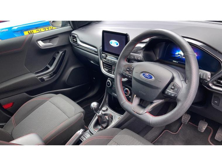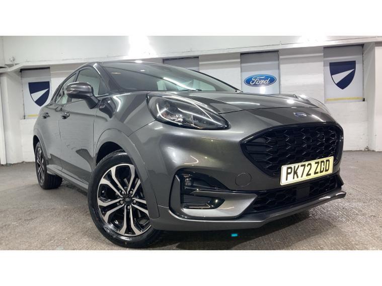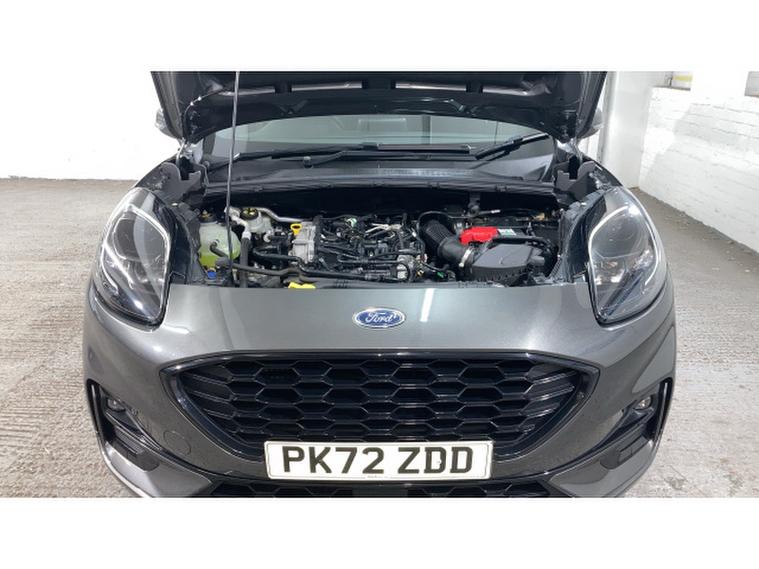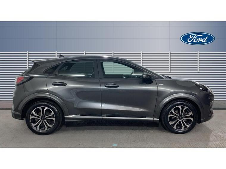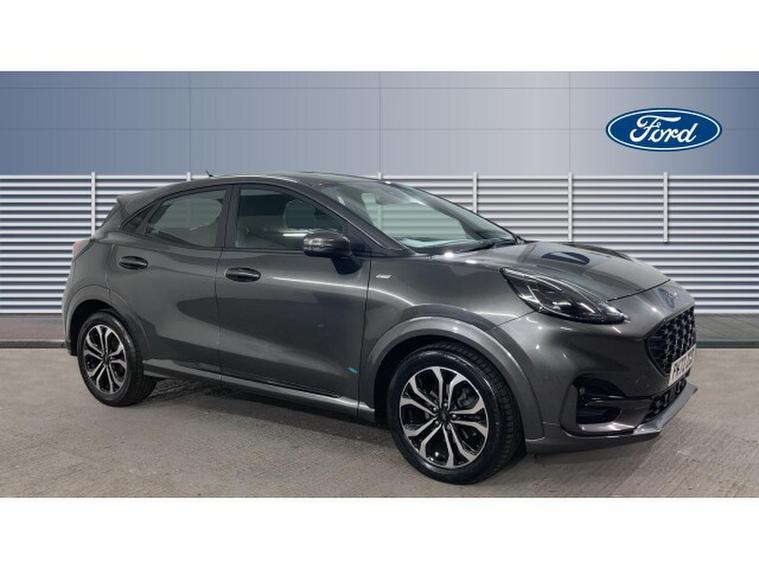 Ford Puma 1.0 EcoBoost Hybrid mHEV ST-Line 5dr Petrol Hatchback, , Introducing the Ford Puma, enhanced with the convenient Winter Pack, a stylish and practical compact SUV designed to deliver sporty performance, modern technology, and year-round comfort. Powered by Fords advanced 1.0-litre EcoBoost mild-hybrid engine, it combines responsive acceleration with excellent fuel efficiency, providing a smooth, economical, and eco-friendly drive ideal for city streets and longer journeys alike. The ST-Line trim elevates the Puma with sporty exterior styling, bold alloy wheels, aerodynamic accents, and red stitching inside for a premium, performance-inspired cabin. The Winter Pack adds heated front seats, heated steering wheel, and other comfort features, ensuring a cosy driving experience even in the coldest months. Inside, the Puma offers a versatile, spacious cabin with clever storage solutions, a digital instrument cluster, and a touchscreen infotainment system with Apple CarPlay and Android Auto for seamless connectivity. Practicality is matched by safety, featuring lane-keeping assist, pre-collision assist, rear parking sensors, and adaptive cruise control to provide confidence on every journey. Fully prepared to dealership standards, this Puma ST-Line offers modern style, efficiency, and comfort, ready to drive away today.