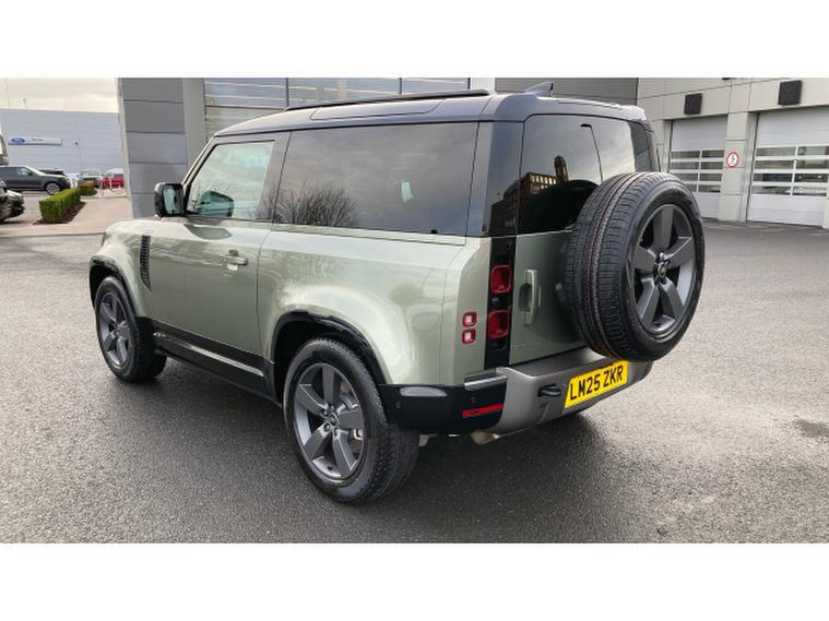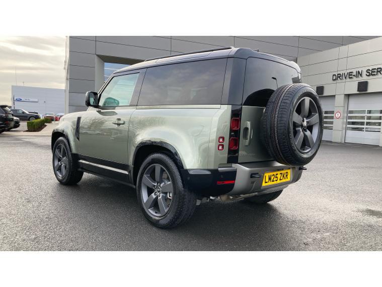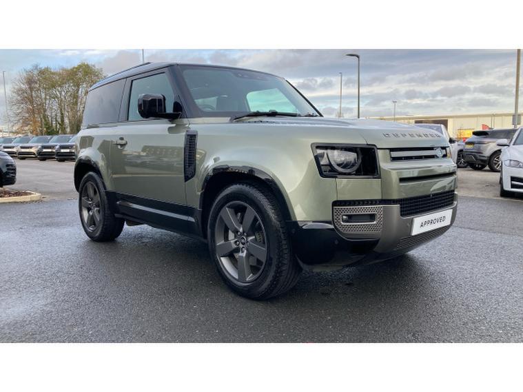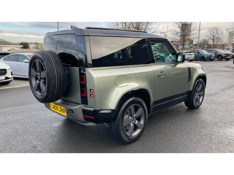 Land Rover Defender 3.0 D350 X-Dynamic HSE 90 3dr Auto Diesel Estate, , Vertu JLR Bolton are proud to offer a rare opportunity to own this stunning Defender 90 D250 X-Dynamic HSE finished in Pangea Green metallic with ebony Windsor leather. This one owner car has been meticulously looked after and comes with optional air suspension pack and black roof rails. Standard spec includes touchscreen with Pivi pro Navigation, 3D rear camera, parking sensors, adaptive cruise control, dual zone climate control, heated windscreen, Meridian sound system, keyless entry, LED headlights, auto lights and wipers, DAB radio, Bluetooth, 20 satin grey alloys, terrain response, hill descent control, push button start, heated windscreen, trip computer, Isofix, Apple car play, interactive driver display, electric memory heated front seats, lane departure warning, steering wheel audio controls and much more. This car is ready to view, test drive and drive away today and comes as part of the Approved JLR programme which includes balance of manufacturer warranty and roadside assistance until March 2028, MOT test warranty, 165 multi point inspection and complimentary experience day as part of your buying experience.