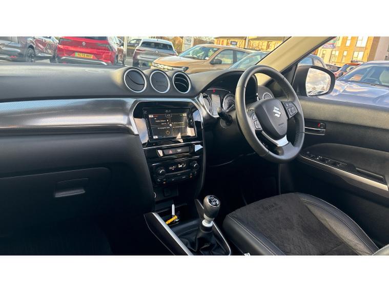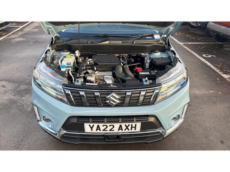 Suzuki Vitara 1.4 Boosterjet 48V Hybrid SZ5 5dr Petrol Estate, , Discover this exceptional 2022 Suzuki Vitara SZ5, boasting remarkably low mileage for its year at just 12, 484 miles. This Euro 6 compliant 1.4 litre petrol hybrid model offers an impressive fuel economy of 53 miles per gallon, making it an economical choice. The SZ5 trim level comes equipped with a suite of advanced features designed for comfort and safety, including integrated Bluetooth for seamless audio and calls, adaptive cruise control for relaxed journeys, and a double sliding panoramic sunroof that floods the cabin with light. Further enhancing its appeal are the blind spot monitor and rear parking camera, providing added confidence and awareness when driving and manoeuvring.