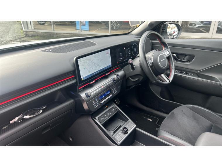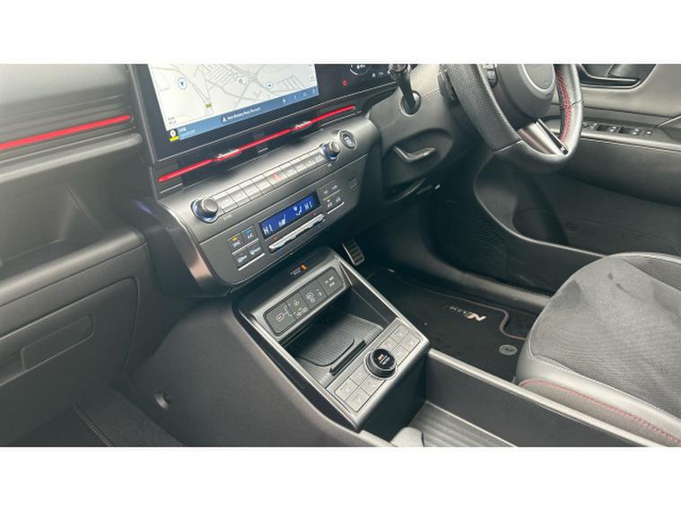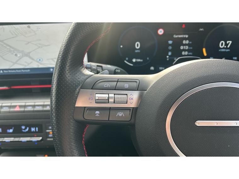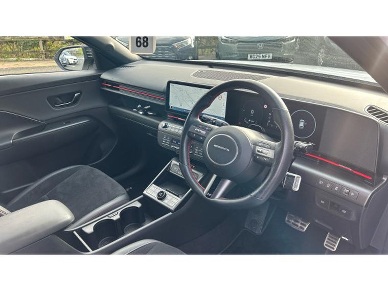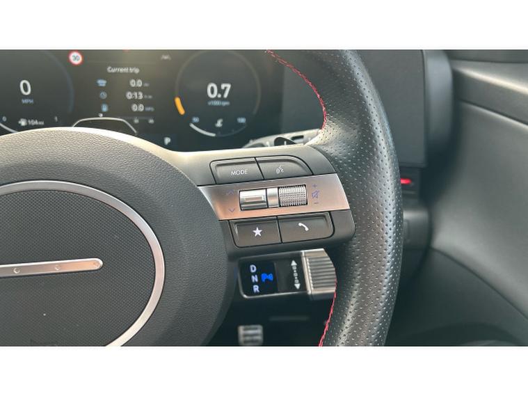 Hyundai KONA 1.6T N Line S 5dr DCT Petrol Hatchback, , This Kona delivers the refined performance of a turbocharged 1.6-litre engine paired with a smooth DCT automatic gearbox, ideal for both spirited weekend drives and effortless city cruising. As an N Line S, it stands out with its aggressive body styling, bold alloy wheels, and signature N Line detailing, giving you that performance-inspired edge wherever you go. Step inside and you're greeted by a premium cabin packed with comfort and technology. Heated front seats make cold mornings far more inviting, while the leather and suede N Line sports interioradds both style and support. The large touchscreen infotainment systemwith Apple CarPlay and Android Auto keeps you connected and entertained on the move, and the premium sound systemensures every playlist sounds its best. Parking and manoeuvring are effortless thanks to the reversing cameraand rear sensors, while keyless entry and startmean you can just hop in and drive. Climate control keeps the interior at the perfect temperature, and the electric folding mirrorshelp you slip into tighter spaces with ease. Safety is front and centre too, with features such as a lane-keeping assist, blind-spot monitoring, and tyre pressure monitoring, giving you total confidence on every journey. With its low mileage, immaculate service record, and impressive specification, this Hyundai Kona N Line S offers outstanding value and peace of mind. At Vertu Honda Plymouth, every vehicle undergoes a thorough inspection by our trained technicians before it reaches the forecourt. We offer part-exchange, nationwide delivery, and can provide a personalised video walkaroundso you can explore the car in detail before you visit. Ready to experience it for yourself? This Kona is waiting for its next adventure.