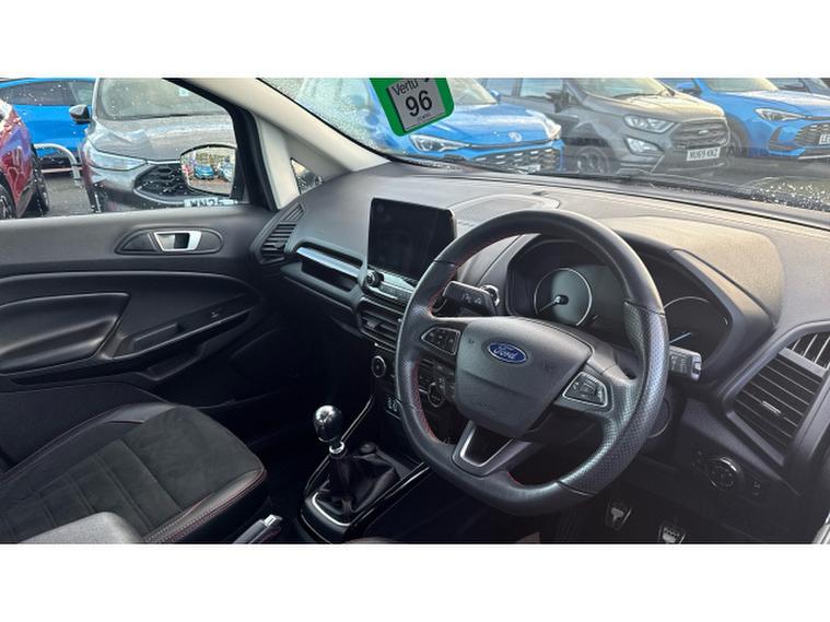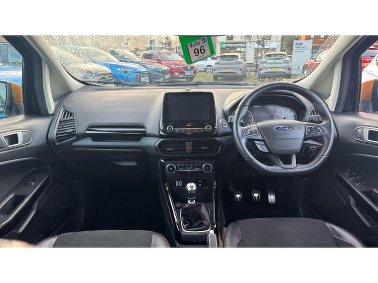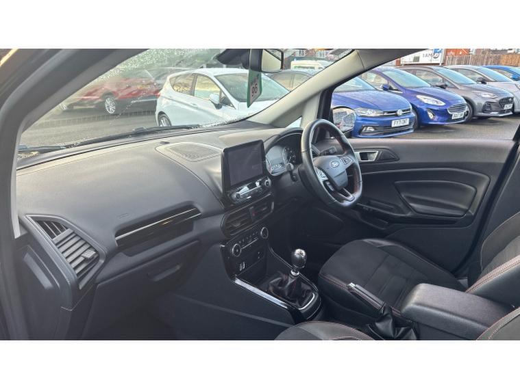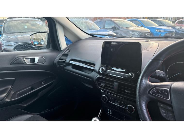 Ford EcoSport 1.0 EcoBoost 125 ST-Line 5dr Petrol Hatchback, , Finished in Metallic Black this ST-Line Ecosport has some great features as standard including SYNC Navigation with Apple / Android Car Play, Rear Privacy Glass, Rear Parking Camera, Auto Lights, and Wipers, Heated Front Screen, the technology on this compact SUV is amazing to test drives are welcomed. All of our vehicles at Vertu Motors come fully prepared with our peace of mind Main Dealer guarantee. Every vehicle is fully prepared both mechanically and cosmetically up to the highest standard, every vehicle also comes with a full HPI vehicle check assuring you that your new vehicle will have no registered accident claims reported, or any outstanding finance, it also shows the vehicle has not been imported. In addition to this we also do a full Government VOSA report check to verify the mileage on all cars over 3 years old. This service comes free of charge to all our customers unlike other main dealers who charge you an admin fee for this service. We also offer nationwide delivery on all our vehicles, so call today to arrange a viewing / test drive and let one of our professional sales executives give you the Vertu experience.