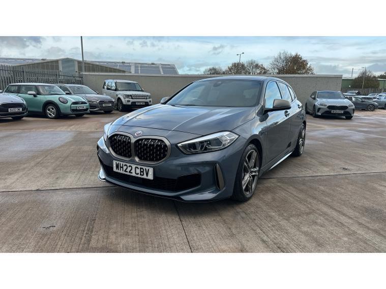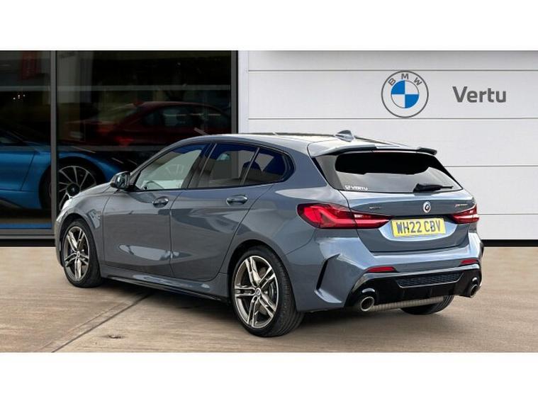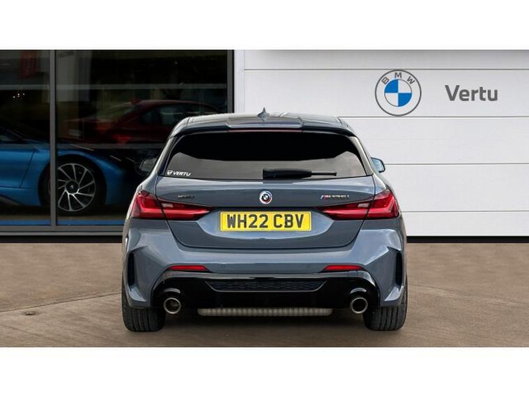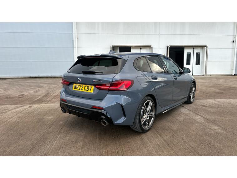BMW 1 Series M135i xDrive 5dr Step Auto Petrol Hatchback, , Introducing a dynamic 2022 BMW M135i xDrive Sports Hatch, presented in the sophisticated Storm Bay finish, paired with sporty Cloth Trigon/Alcantara Black upholstery. With just 33, 109 miles, this five-door performance hatchback delivers the perfect balance of everyday practicality and exhilarating driving pleasure. Its powerful engine and intelligent xDrive all-wheel-drive system ensure confident handling in all conditions, while its purposeful design reflects BMWs performance heritage.