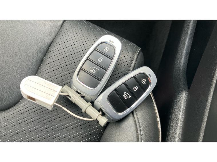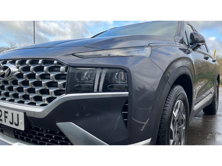 Hyundai SANTA FE 1.6 TGDi Hybrid Premium 5dr Auto Hybrid Estate, , This 2022 Hyundai Santa Fe h T GDi Premium offers a blend of efficiency and practicality, making it an excellent choice for families. Powered by a 1.6 litre petrol hybrid engine and meeting Euro 6 emissions standards, this seven seater is designed for comfortable journeys. Notable features include a heated steering wheel for those chilly mornings and automatic headlights that activate with a dusk sensor, ensuring visibility is always optimal.