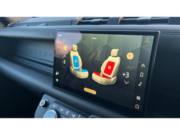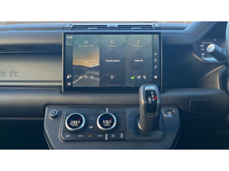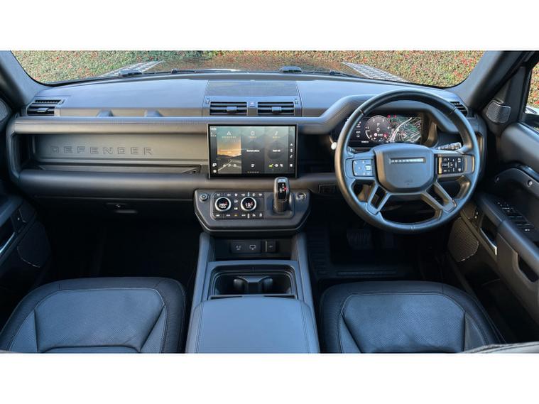 Inside, the Defender 110 X-Dynamic HSE offers superior craftsmanship and modern design. The striking Cross Car Beam in Dark Grey enhances the cabin's bold and contemporary atmosphere, while the high-quality materials and thoughtful ergonomics create an environment built around comfort and adventure.