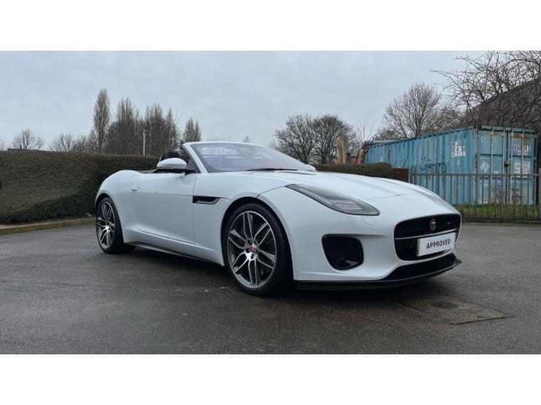 Jaguar F-Type 3.0 [380] Supercharged V6 R-Dynamic 2dr Auto Petrol Convertible, , Experience pure driving emotion with this Approved Used Jaguar F-TYPE 3.0 [380] Supercharged V6 R-Dynamic Convertible, a true icon of performance and design. Finished in the stunning Yulong White, this beautifully sculpted sports car exudes elegance and athleticism from every angle. Step inside and you're greeted by a sleek, premium Black interior, crafted to immerse you fully in the thrill of the drive.