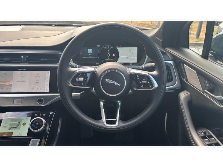 Jaguar I-Pace 294kW EV400 HSE Black 90kWh 5dr Auto 11kW Charger Electric Estate, , This 2022 Jaguar I-PACE 400 HSE Black presents an exceptional opportunity with its remarkably low mileage. As an all electric, four wheel drive vehicle, it boasts a substantial 90 kWh battery offering a maximum range of 277 miles when new. Charging is convenient, with a full charge at home taking approximately 12 hours and 36 minutes using a 7kW charger, while rapid public charging can achieve 80% capacity in as little as 50 minutes. This HSE Black trim level comes equipped with a suite of premium features, including a Meridian 3D Surround Sound System for an immersive audio experience, a heated steering wheel for added comfort, and advanced driver aids such as Blind Spot Assist and Adaptive Cruise Control with Steering Assist. The striking Matrix LED Headlights with Signature Daytime Running Lights ensure excellent visibility.