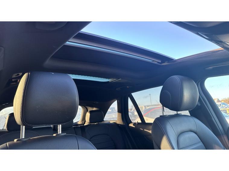 Practicality is one of the GLC strengths. The alternating current charging system makes day to day charging straightforward whether at home or on public points. The easy pack powered tailgate lifts to reveal a versatile luggage area that suits family duties business travel or weekend escapes. Inside the cabin you will find heated black leather seats with full memory functions providing both comfort and support on longer journeys. The panoramic sliding sunroof fills the interior with natural light while the MBUX satellite navigation system and Apple CarPlay deliver intuitive connectivity and clear guidance. Safety is equally impressive thanks to crisp LED headlights and a full 360 degree camera system offering complete visibility while manoeuvring.