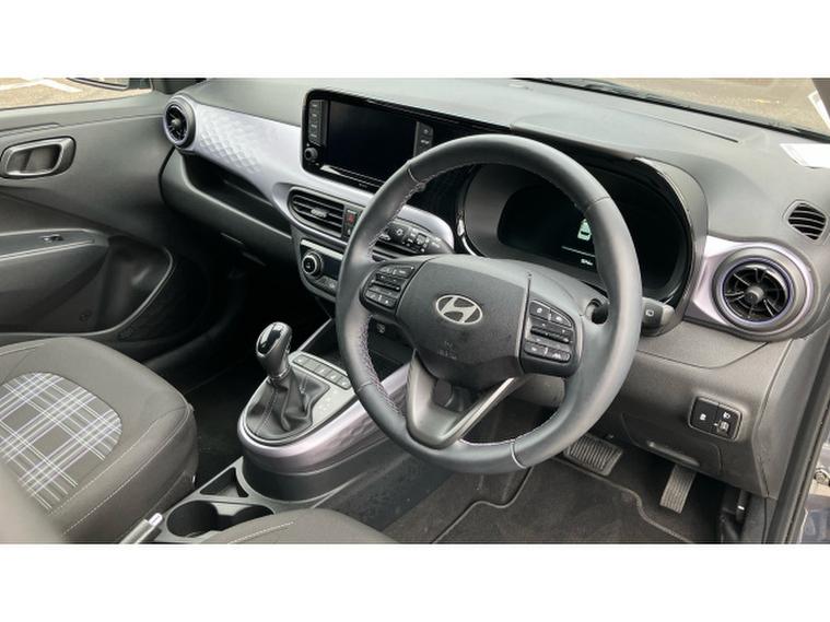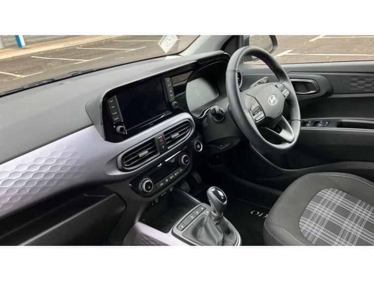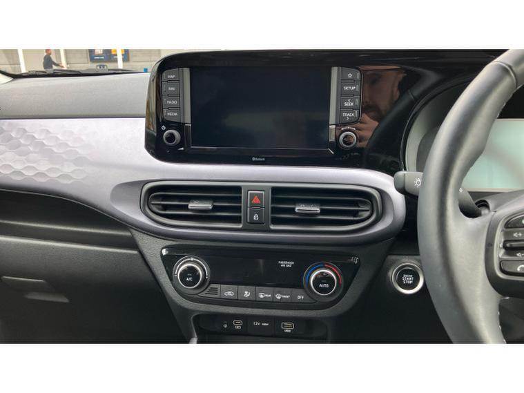 Hyundai i10 1.0 [63] Premium 5dr Auto [Nav] Petrol Hatchback, , This 2024 Hyundai i10 Premium presents an exceptional opportunity with remarkably low mileage for its age, having covered just 6015 miles. This Euro 6 compliant model is powered by an efficient 1.0 litre petrol engine, offering a compelling blend of performance and economy. Inside, you'll find a host of desirable features designed for comfort and convenience, including a heated steering wheel and heated front seats, perfect for those colder mornings. Parking is made simpler with rear parking sensors and assistance, while the Bluetooth connectivity with voice recognition allows for seamless integration of your phone for calls and music.