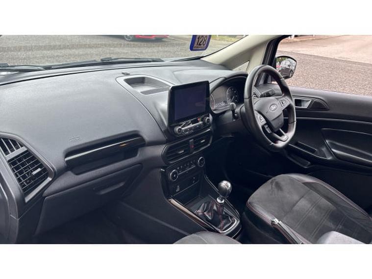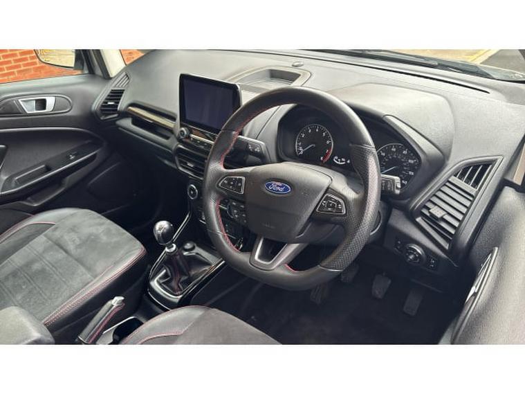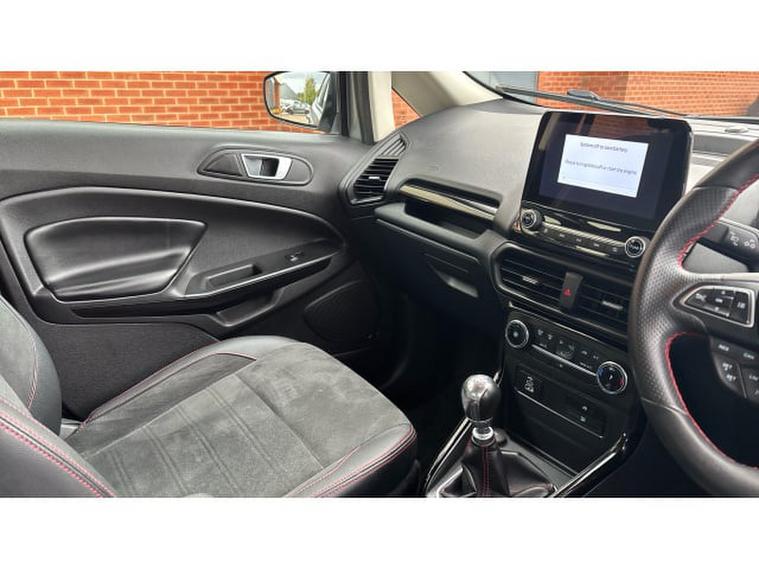 Ford EcoSport 1.0 EcoBoost 125 ST-Line 5dr Petrol Hatchback, , Ford EcoSport 1.0 EcoBoost 125 ST-Line Practical, Spacious and Great Value. Let us tell you why this EcoSport stands out: he 1.0 EcoBoost 125 offers a good balance of economy and practicality relatively frugal fuel consumption and modest running costs for a small SUV. With 5 doors and 5 seats, its easy to manoeuvre and park in town, yet still ready for longer trips a useful middle ground between a city car and a full-size SUV. Boot capacity around 356 litres (seats up) is reasonable for luggage or weekly shopping, fold the rear seats and you get up to 1, 238 litres of cargo space ideal for larger loads, family weekends or DIY runs. he EcoSport remains compact enough for urban driving and tight parking, while offering more load flexibility and interior room than typical small hatchbacks.