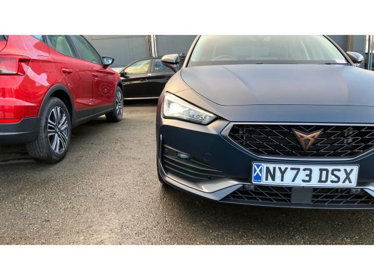 CUPRA Leon 1.5 TSI V1 Design Edition 5dr Petrol Hatchback, , This 2024 CUPRA Leon TSI V1 Design Edition presents an exceptional opportunity with its remarkably low mileage of just 10591 miles. This Euro 6 compliant model boasts a 1.5 litre petrol engine and is presented in the V1 Design Edition trim. Inside, you will find a host of desirable features designed for comfort and convenience, including three zone climate control, a rear view camera for effortless parking assistance, and a wireless phone charger to keep your devices powered up. The opening panoramic sunroof adds a sense of spaciousness and light to the cabin.