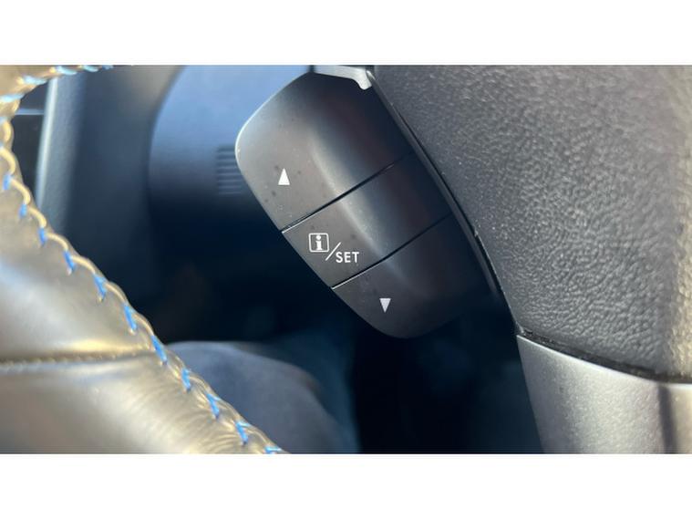 - Leather sports steering wheel and gearshift knob with blue stitching