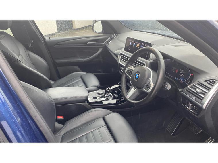 BMW X3 xDrive30d MHT M Sport 5dr Auto Diesel Estate, , Experience dynamic performance and premium comfort with this impressive BMW X3 xDrive30d M Sport, finished in the vibrant Phytonic Blue Metallic. Its strong, athletic stance is highlighted by stylish 20-inch alloy wheels, while the Black Leather Seats create a refined, contemporary cabin that perfectly complements the X3's premium feel.