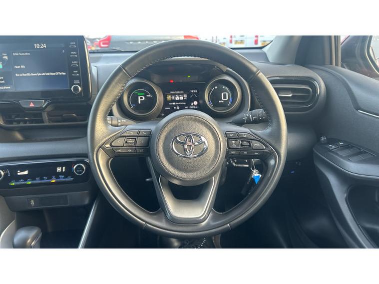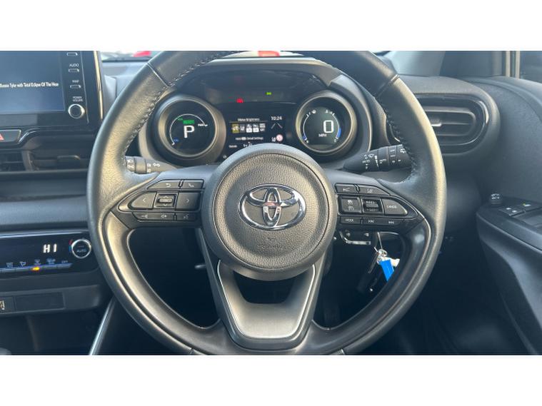 Toyota Yaris 1.5 Hybrid Design 5dr CVT Hybrid Hatchback, , This 2023 Toyota Yaris VVT-h Design is a superb example of modern motoring, offering an exceptional blend of efficiency and technology. As a Euro 6 compliant model, this 1.5L petrol hybrid is registered in 2023 and comes in the popular Design trim. You'll appreciate the convenience of LED headlights, including a distinctive LED front light guide, and the ease of parking with a reversing camera. Stay connected on the go with seamless Bluetooth connectivity, and enjoy stress free journeys thanks to the adaptive cruise control system.