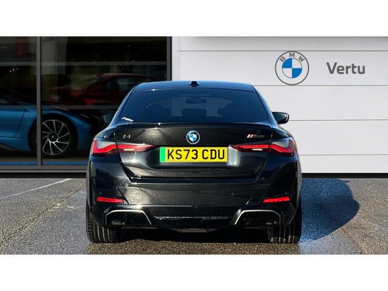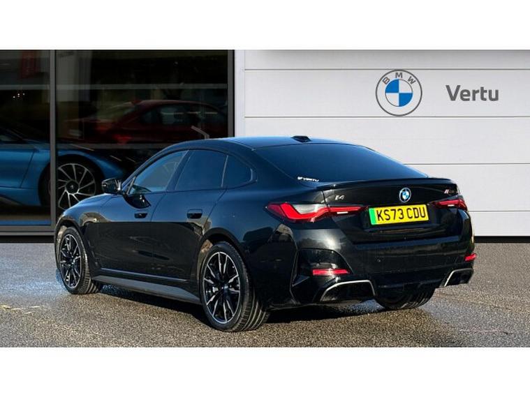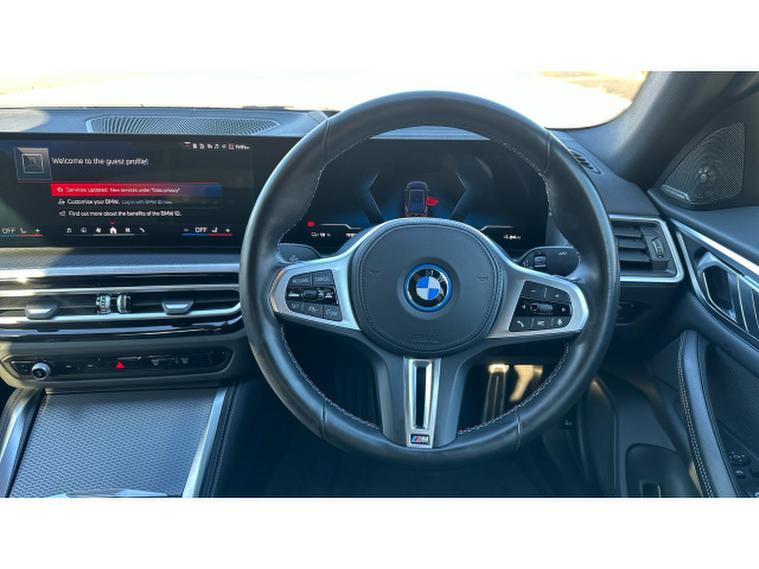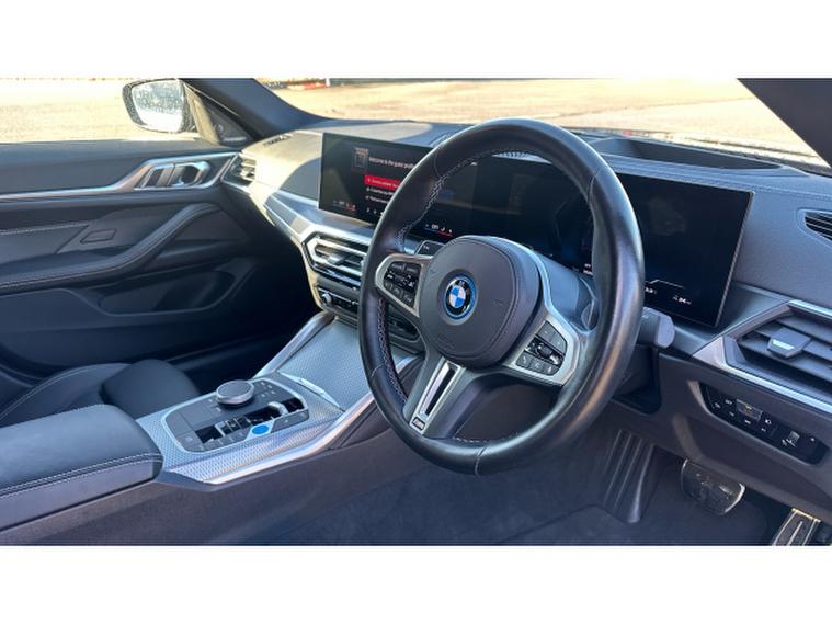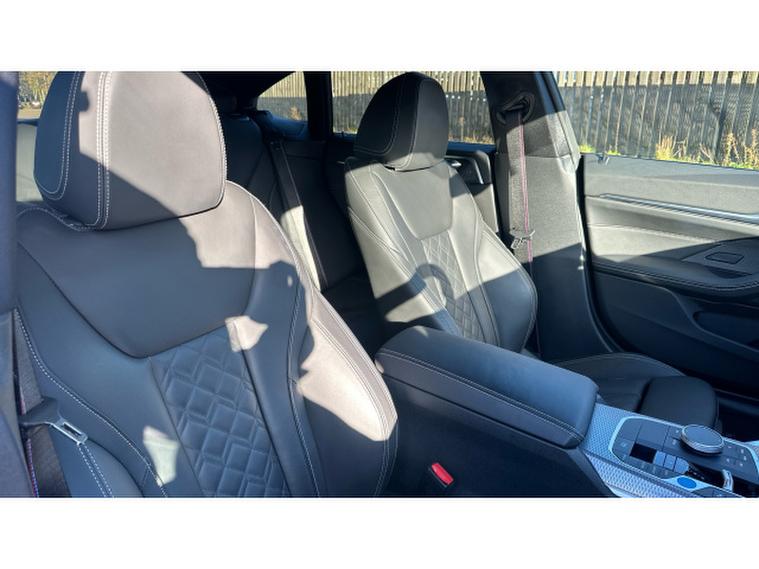 BMW i4 400kW M50 83.9kWh 5dr Auto Electric Hatchback, , Introducing an exceptional 2023 BMW i4 M50 finished in sleek Black Sapphire, complemented by luxurious Black Merino Leather seats. With just 19, 280 miles, this fully electric performance Gran Coup combines thrilling acceleration with refined comfort, effortlessly blending everyday usability and cutting-edge BMW engineering. The i4 M50 delivers instant torque, superb handling and a truly premium driving experience that reflects its M lineage and modern electric innovation.