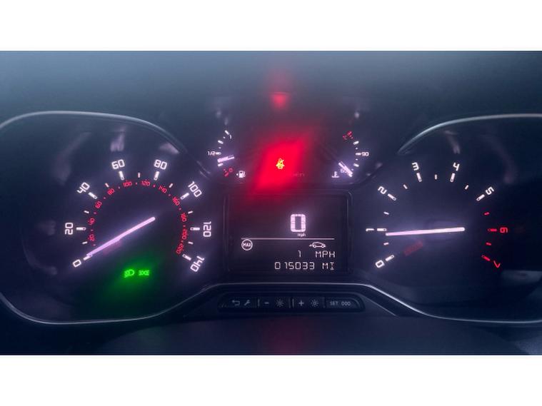 - Driver instrument cluster including trip computer and rev counter with white text LCD display and white needles and chrome decor