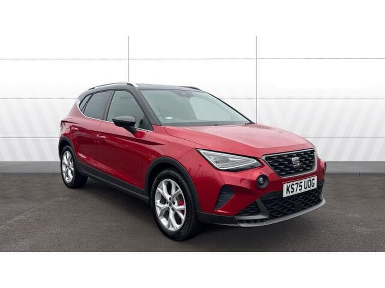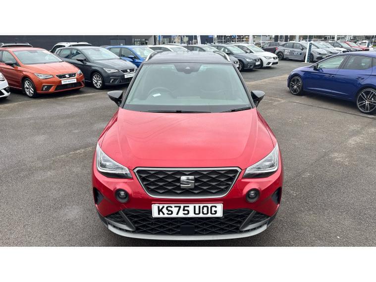 SEAT Arona 1.0 TSI 115 FR 5dr Petrol Hatchback, , This 2025 SEAT Arona TSI FR presents an exceptional opportunity with an incredibly low mileage of just 5 miles, practically as new. This one owner vehicle boasts a full dealership service history, ensuring its provenance is impeccable. Under the bonnet, you'll find a responsive 1.0 litre petrol engine, compliant with Euro 6 emissions standards. The FR trim level adds a sporty touch, and for your convenience, it includes a wireless phone charger and dual zone climate control, allowing both driver and passenger to set their preferred temperature.