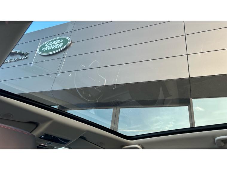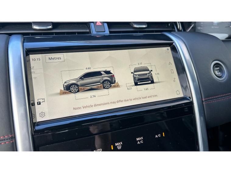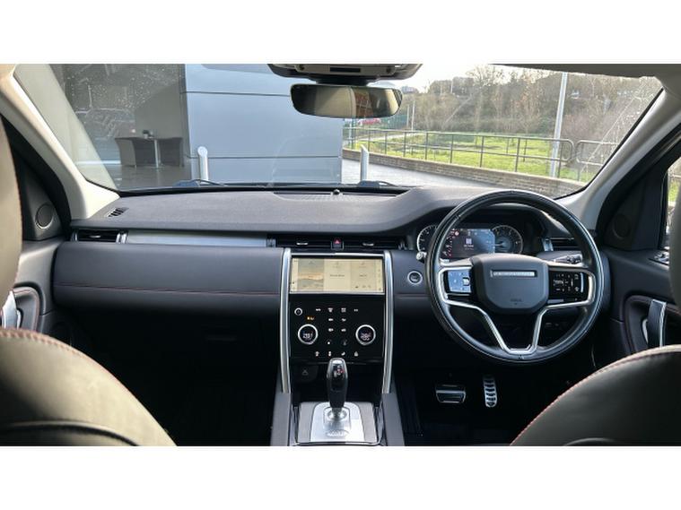 The striking R-Dynamic design is enhanced by 20 Style 5098 diamond-turned wheels with gloss grey contrast, privacy glass and front fog lights, giving the Discovery Sport a purposeful, athletic stance. The fixed panoramic sunroof floods the cabin with natural light, beautifully complementing the Ebony interior and Light Oyster Morzine headlining.