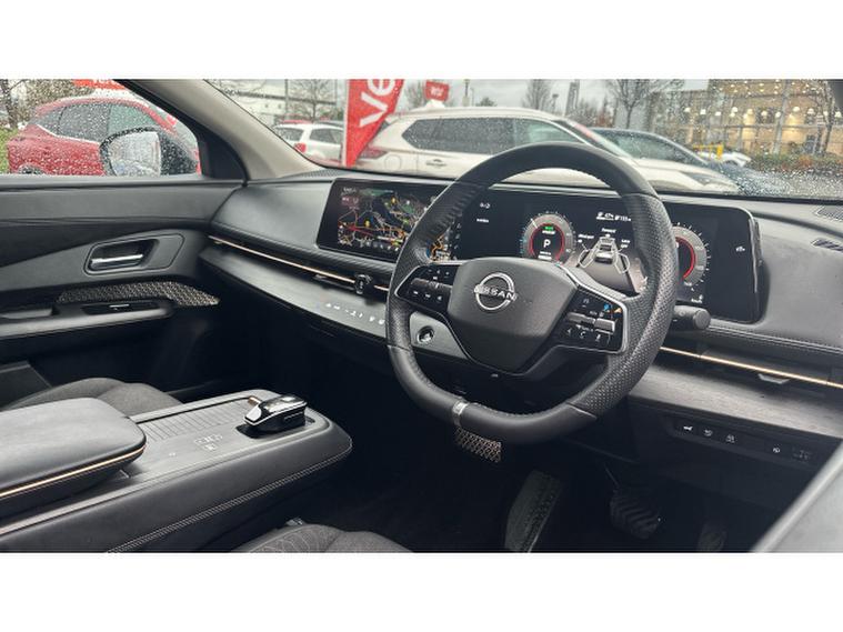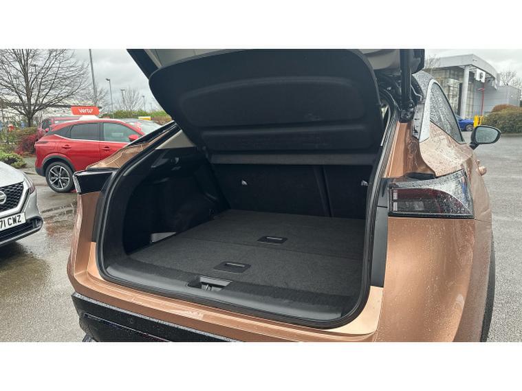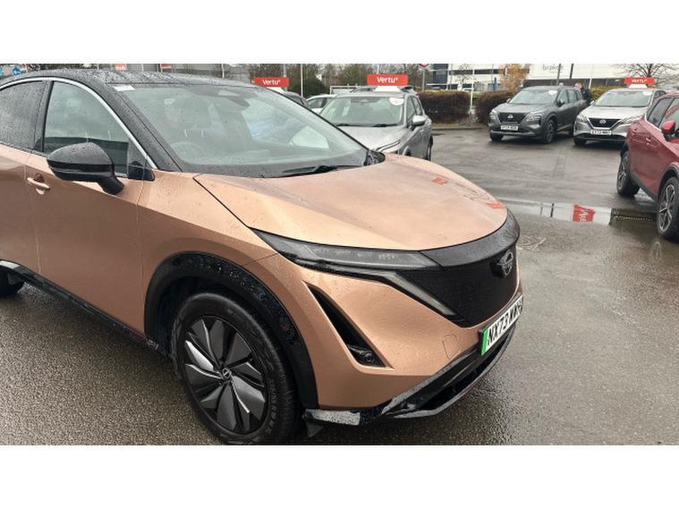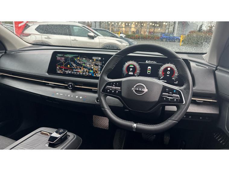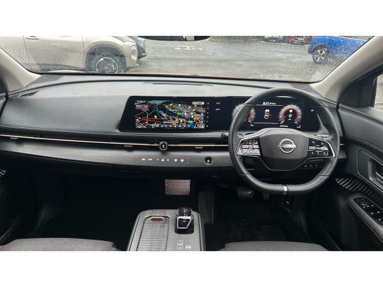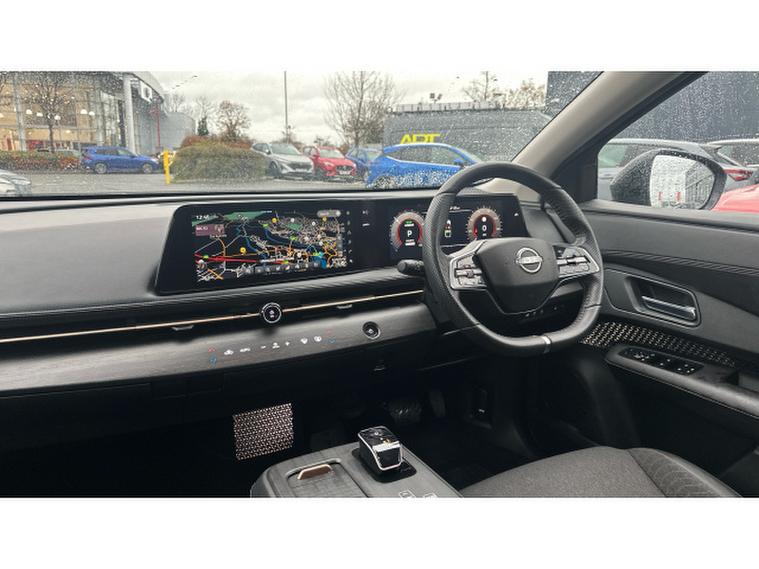 As an Advance model, this Ariya is packed with high-spec features. Externally, its sleek coupe-inspired SUV design, striking LED lighting, and distinctive V-motion front end give it a futuristic and premium presence on the road. Inside, youll find one of Nissans most impressive interiors to date: a spacious, minimalist cabin with high-quality materials, ambient lighting, zero-gravity inspired seating and a completely flat floor for extra comfort.