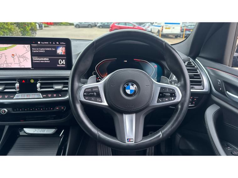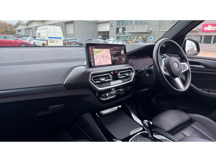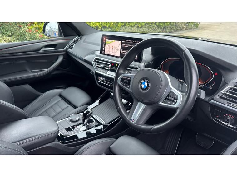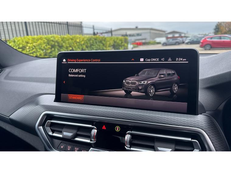 This model is equipped with a wide range of impressive features. Mild hybrid technology boosts efficiency and responsiveness, while the larger fuel tank makes longer journeys even more convenient. M Sport brakes and adaptive suspension work together to deliver confident handling and a smooth, controlled ride. Acoustic glass helps create a quiet, premium cabin feel, complemented by ambient lighting and sun protection glass for added comfort. Practical features such as folding wing mirrors and front heated sport seats make everyday driving more enjoyable. Driving Assistant and Parking Assistant offer helpful support in busy environments, and adaptive LED headlights ensure excellent visibility at night. Live Cockpit Professional and DAB radio bring high-quality digital displays and sound, completing the modern interior experience. The M Sport exterior styling and high-gloss Shadowline finish give the X3 a sporty and sophisticated edge.