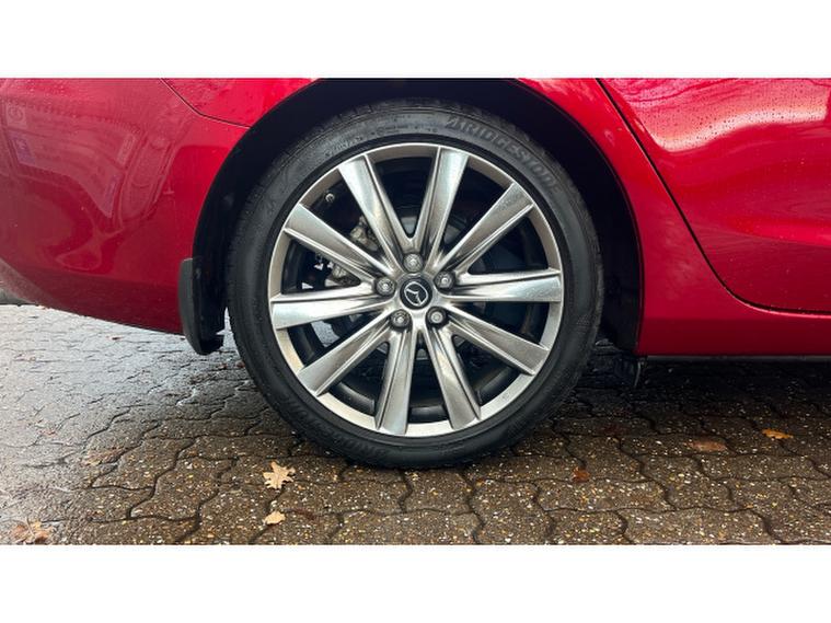 From the outside, the Mazda 6 impresses with its sleek, aerodynamic lines, bold grille, and elegant stance. The Soul Red Crystal finish enhances its striking presence, reflecting light beautifully and highlighting the cars sporty yet refined design. This saloon exudes confidence on every road, turning heads while offering a practical and spacious cabin for driver and passengers alike.