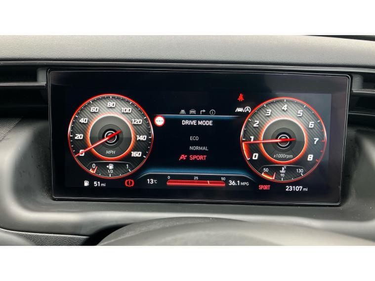 Hyundai TUCSON 1.6 TGDi N Line 5dr 2WD Petrol Estate, , This 2022 Hyundai TUCSON T-GDi N Line offers a compelling blend of style and practicality, boasting a 1.6 litre petrol engine and meeting Euro 6 emission standards. As an N Line trim, it presents a sporty aesthetic, complemented by desirable features such as a wireless phone charging pad for your convenience and heated front seats to ensure comfort during colder journeys.