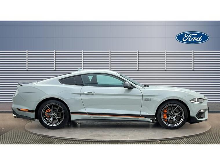 Ford Mustang 5.0 V8 Mach 1 2dr Auto Petrol Coupe, , Gloucester Ford have this 2 owner from new Ford Mustang Fastback 5.0 V8 Mach 1 2dr Auto finished in Fighter Jet Grey. The Ford Mustang Fastback 5.0 V8 Mach 1 in Fighter Jet Grey is an extraordinary blend of power, heritage, and modern performance engineering. As one of the most iconic muscle cars ever created, the Mach 1 stands out even further with its commanding presence and unmistakable attitude. The Fighter Jet Grey paintwork enhances its boldness, giving the car a sleek, stealth-like appearance that immediately captures attention. Its aerodynamic fastback silhouette, aggressive front fascia, and exclusive Mach 1 detailing make it a true celebration of Mustang performance tradition.