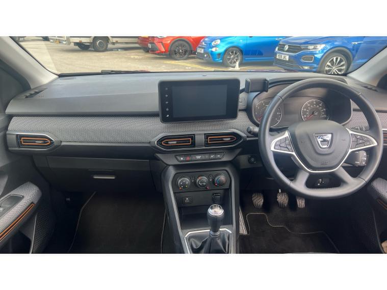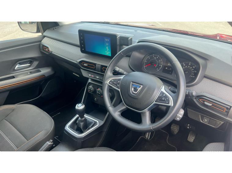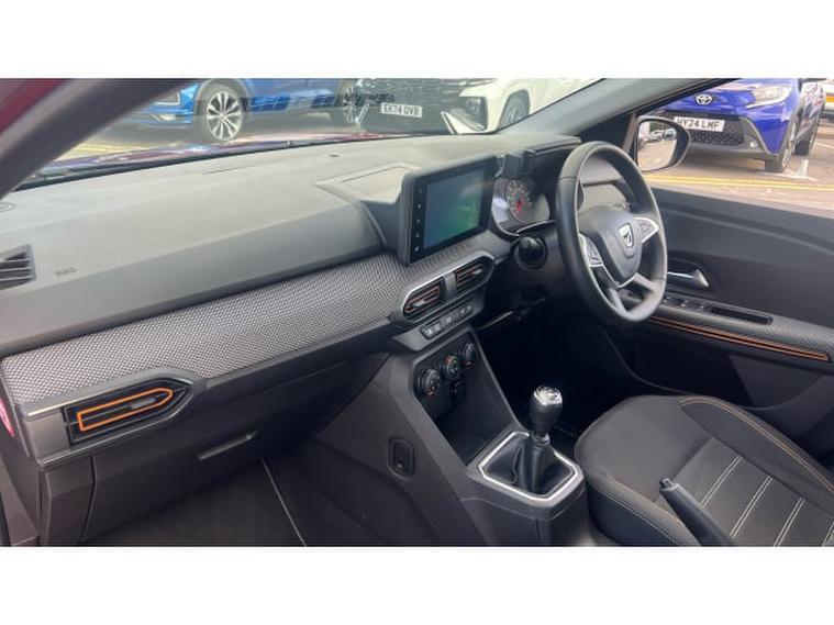 Dacia Sandero Stepway 1.0 TCe Comfort 5dr Petrol Hatchback, , The Dacia Sandero Stepway Hatchback 1.0 , TCe Comfort 5‑, door is a practical and value-oriented small crossover-style hatchback that balances modest performance with everyday usability. It is powered by a 1.0-litre turbocharged petrol engine producing around 91 , bhp, delivering a top speed of about 107 , mph and a 062 , mph time of roughly 12 seconds adequate for city driving, commuting, and occasional motorway journeys. The Stepway styling gives it a slightly raised ride height, protective body cladding, and a more rugged look compared with a standard hatchback, adding versatility without increasing size. Inside, the Comfort trim provides an 8‑, inch media display with smartphone mirroring, Bluetooth, DAB radio, electric front windows, manual air conditioning, a height-adjustable steering wheel, split-folding rear seats with ISOFIX mounting points, and a functional, comfortable cabin layout. With around 328 , litres of boot space, expandable by folding the rear seats, it offers practical cargo capacity for shopping, luggage, or daily loads, making it a sensible choice for small families, commuters, or anyone seeking an affordable and versatile hatchback with a touch of crossover style.