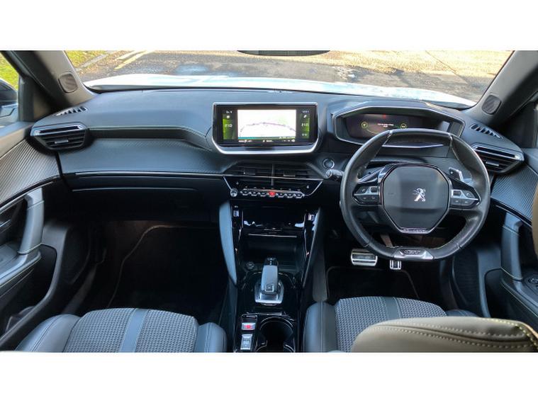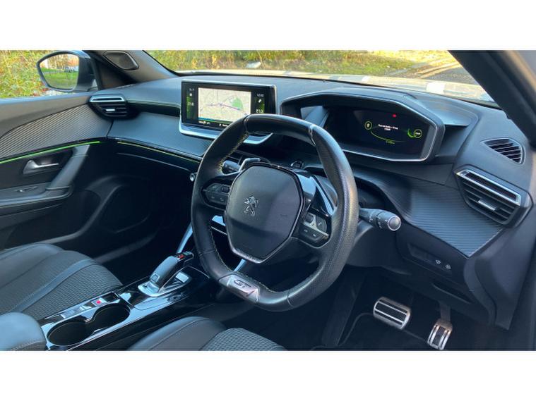Inside, the cabin showcases Peugeots innovative i-Cockpit layout with a compact steering wheel, digital instrument display and a crisp central touchscreen. The GT Line specification enhances the experience further with high-quality materials, ambient lighting, advanced connectivity features and supportive sports seats that offer superb comfort. The interior feels modern, spacious and cleverly designed, providing a premium environment for both driver and passengers.