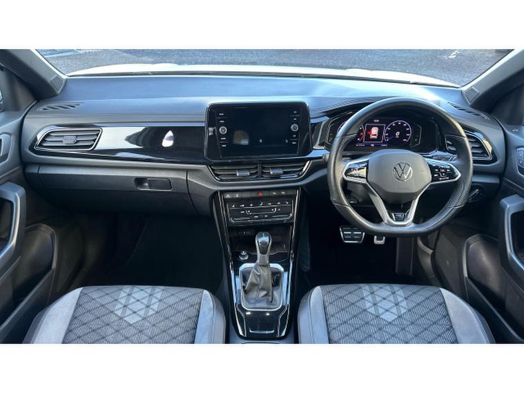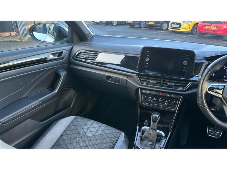 Volkswagen T-Roc 1.5 TSI R-Line 5dr DSG Petrol Hatchback, , Vertu Lichfield Vauxhall are proud to present this stunning 2022 (72 plate) Volkswagen T-Roc TSI R-Line. With just one previous keeper and full long-life service history, this stylish R-Line modelalso features a 1.5 litre petrol engine, meeting Euro 6 emission standards. Notable features include the striking Black Design Pack, a rear view camera with parking assistance, and a multifunction leather wrapped sports steering wheel that is both heated and includes Tiptronic controls. Complementing these are the 19 inch Misano black alloy wheels, all contributing to its distinctive appeal. Experience impressive performance with this T-Roc, achieving 0-62mph in just 8.3 seconds, a highlight that demonstrates its dynamic capability compared to similar vehicles. Its fuel economy is also a strong point, achieving up to 46 mpg, and it benefits from low CO2 emissions. This combination of performance, efficiency, and advanced features makes this Volkswagen T-Roc a compelling choice for those seeking a well equipped and engaging driving experience. Prepared to the highest standards by our expert trained technicians and priced to represent great value, our friendly award winning sales team would be happy to send you a personal video of the car today. Flexible finance options are available to suit your budget Reserve any vehicle online or over the phone for just 99 fully refundable! Visit our experienced team at Vertu Lichfield Vauxhall!