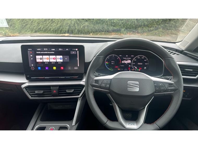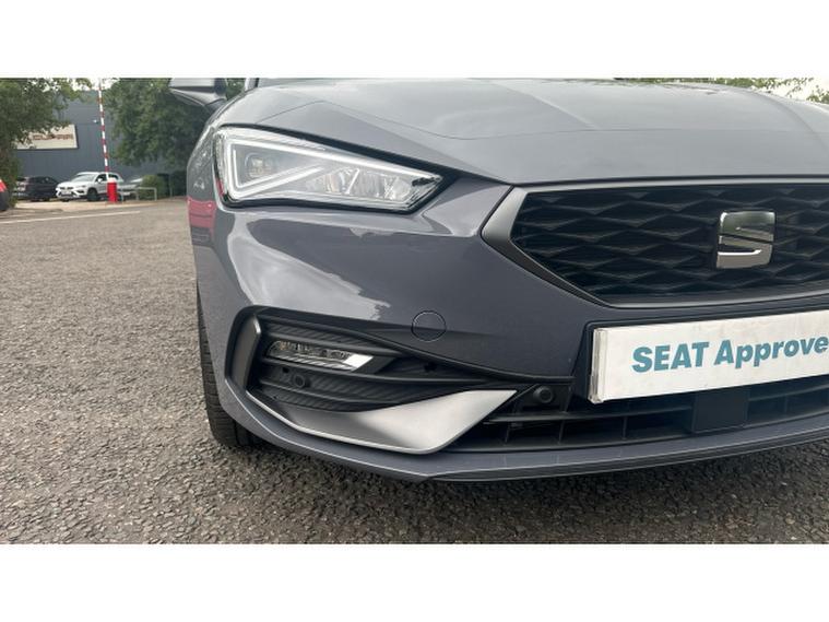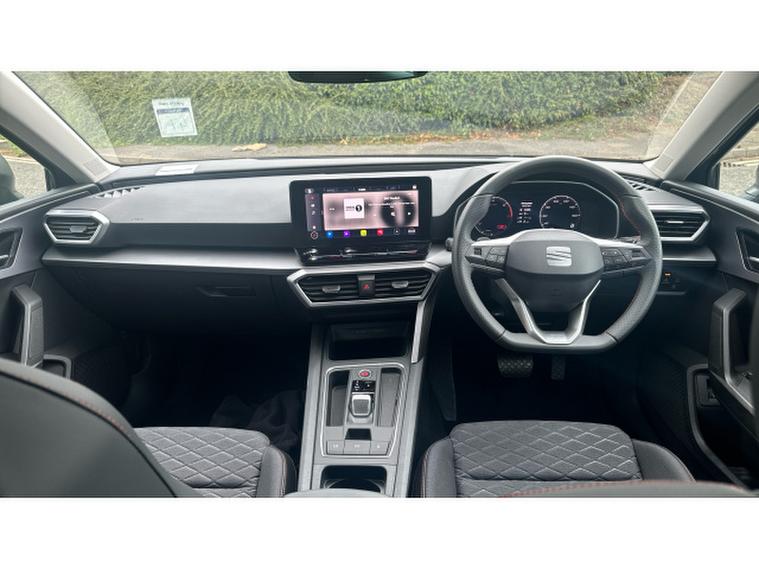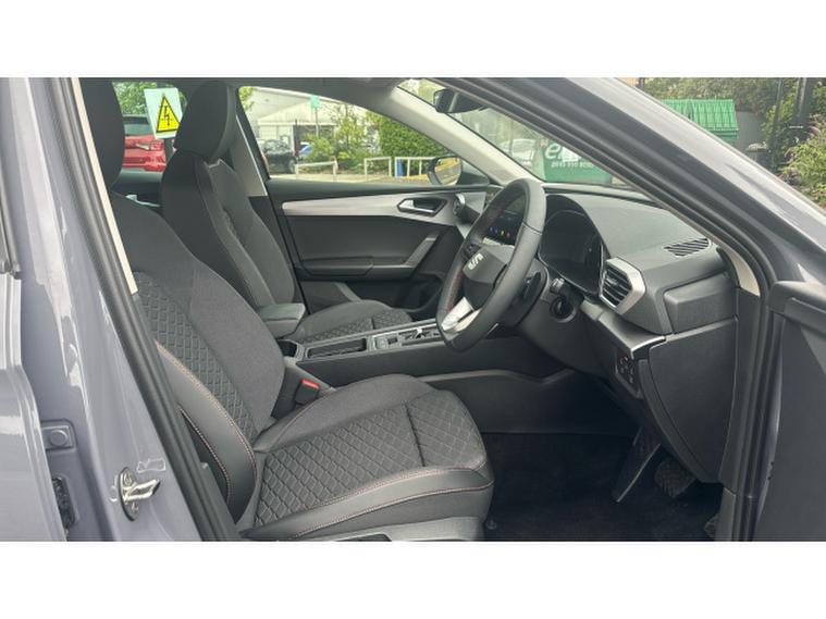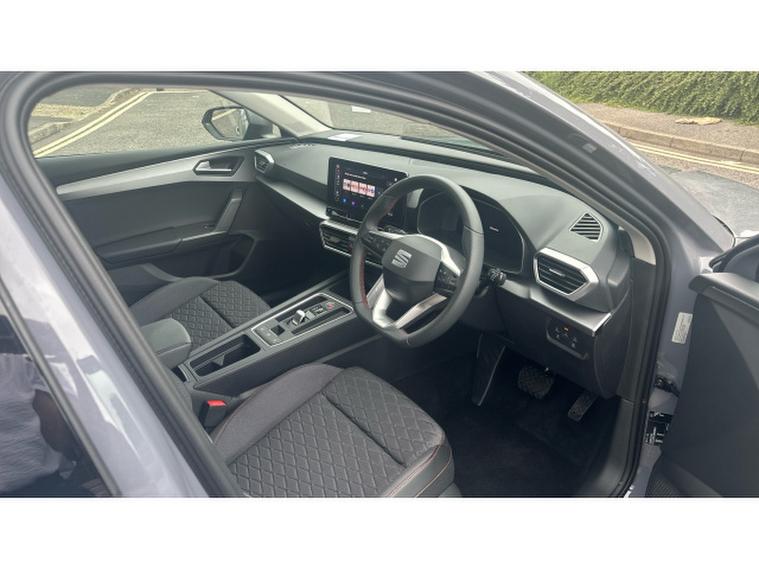 The FR trim sharpens everything. Its assertive front end, sculpted side profile and sportier bumpers all stand out brilliantly against the Graphene Grey paintwork, while striking alloy wheels and full LED headlights complete the unmistakable FR stance. Inside, the Leon continues its premium ascent with heated sports seats, a fully digital cockpit, dual-zone climate control, wireless phone mirroring and a large, crisp infotainment display that responds instantly to your touch. Safety and convenience tech come as standard, including adaptive cruise control, lane assist and a suite of parking aids that make every journey smoother.
