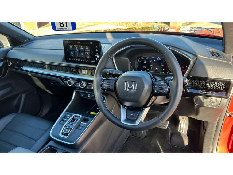 The Advance Tech trim adds a premium level of specification to the CR‑, , V. It includes features such as a panoramic glass roof, heated front and rear seats, a heated leather steering wheel, a digital driver display, wireless charging, and Honda CONNECT with Apple CarPlay and Android Auto integration. Safety is also a priority, with Honda Sensing 360 providing adaptive cruise control, lane keeping assist, collision mitigation, and a multi-view camera system. These features make driving safer and less stressful.