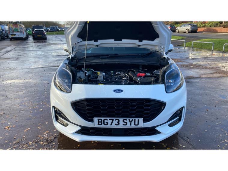 Ford Puma 1.0 EcoBoost Hybrid mHEV ST-Line 5dr Petrol Hatchback, , This Ford Puma Delivers sporty style, smart technology, and hybrid efficiency. Its 1.0-litre EcoBoost mild-hybrid engine provides lively, economical performance with smooth handling and a dynamic drive. The ST-Line trim adds striking body styling, 17-inch alloy wheels, sports suspension, and a bold interior with red stitching. Inside, enjoy heated front seats, heated steering wheel, Ford SYNC infotainment with navigation, Apple CarPlay, and Android Auto. A quick-clear heated windscreen, keyless start, and rear parking sensors add convenience, while lane-keeping assist and pre-collision assist ensure peace of mind. With its raised driving position, clever MegaBox storage, and sporty design, this Puma ST-Line perfectly combines practicality, performance, and modern comfort. All our vehicles at Vertu Motors come fully prepared with our peace of mind Main Dealer guarantee. Every vehicle is fully prepared both mechanically and cosmetically up to the highest standard which includes having any tyre replaced that has less than 3mm tread depth. Every vehicle will have a minimum of 7 months MOT remaining and you will not have to service the vehicle for at least 6 months or 6000 miles. We ensure that you will have a minimum of 2 keys and to give you even further reassurance we also supply you with a 3 months complimentary warranty and a 14-day money back guarantee. Our vehicles also come with a full HPI vehicle check assuring you that your new vehicle will have no registered accident claims reported, or any outstanding finance, it also shows the vehicle has not been imported. We also do a full Government VOSA report check to verify the mileage on all cars over 3 years old. This service comes free of charge to all our customers unlike other main dealers who charge you an admin fee for this service. We also offer nationwide delivery on all our vehicles, call today to arrange a viewing / test drive and let one of our professional sales executives give you the Vertu experience **DUE TO HIGH STOCK TURNOVER WE RECOMMEND RESERVING THE CAR TO AVOID DISAPOINTMENT**