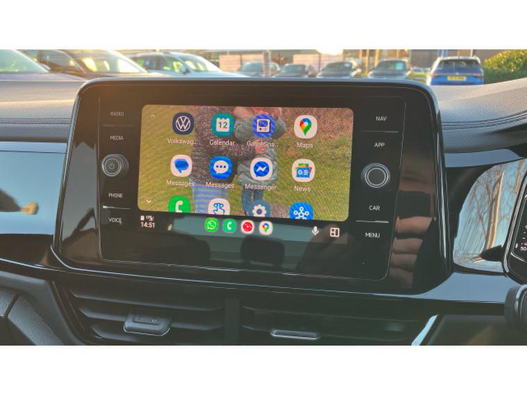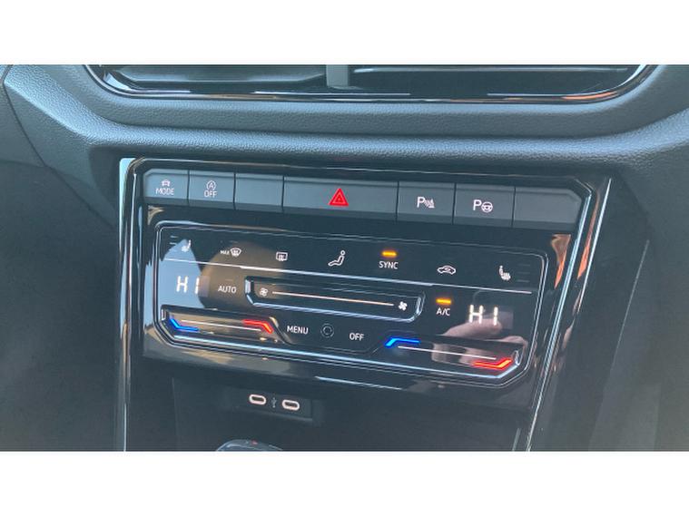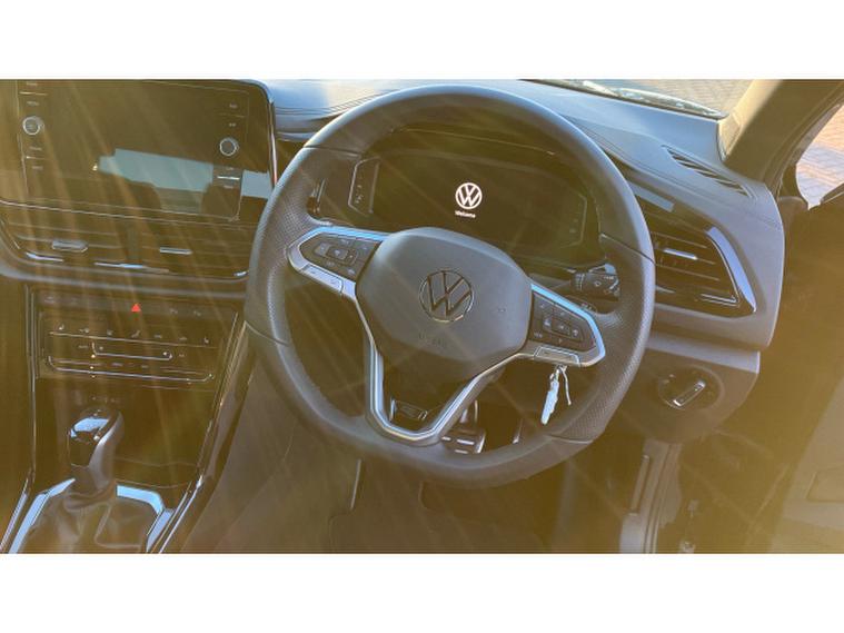 As standard, it comes with touch screen media with satellite navigation, Apple Car Play, Android Auto, Bluetooth and DAB radio, front and rear parking sensors, digital drivers cockpit, adaptive cruise control, lane assist, dual zone climate control with air conditioning, heated R-Line sports seats, auto lights and wipers, front fog lights, LED headlights, dynamic indicators, LED interior lighting, electronic handbrake, privacy glass, roof rails, and much more.