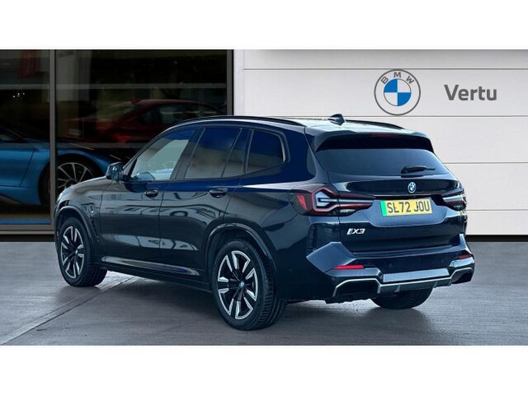 BMW iX3 210kW M Sport 80kWh 5dr Auto Electric Estate, , Introducing a superb 2022 BMW iX3 M Sport, presented in the sophisticated shade of Carbon Black and paired with luxurious Black Vernasca Leather seats featuring elegant Blue Stitching. With just 19, 726 miles, this fully electric SUV embodies the perfect balance of performance, innovation, and comfort, offering a refined driving experience in every journey. When purchasing from Vertu BMW Exeter, you benefit from the reassurance and quality that comes with every Approved Used BMW. Each vehicle includes 12 Months BMW Approved Warranty, 12 Months BMW Roadside Assistance, a 12 Months MOT, and a full service history, giving you total peace of mind. Our manufacturer-trained technicians carry out meticulous inspections and maintenance to ensure your BMW meets the highest standards, giving you confidence in your purchase and continued ownership enjoyment. To help you explore this iX3 further, simply contact our dedicated team, and we will be delighted to provide a personalised video presentation, showcasing the vehicle in detail and answering any questions you may have. This BMW iX3 M Sport is equipped with an array of premium features designed to elevate your driving experience. Heated Front Seats ensure comfort on colder days, while the Driving Assistant enhances safety with intelligent on-road support. The Electric Boot Lid offers effortless practicality, perfect for busy lifestyles or loading cargo with ease. Discover the outstanding capability and style of the BMW iX3 M Sport at Vertu BMW Exeter and take the next step towards electric driving excellence.