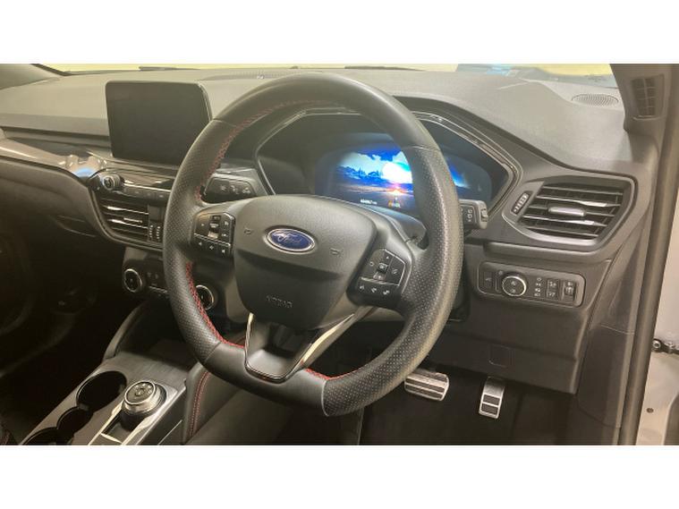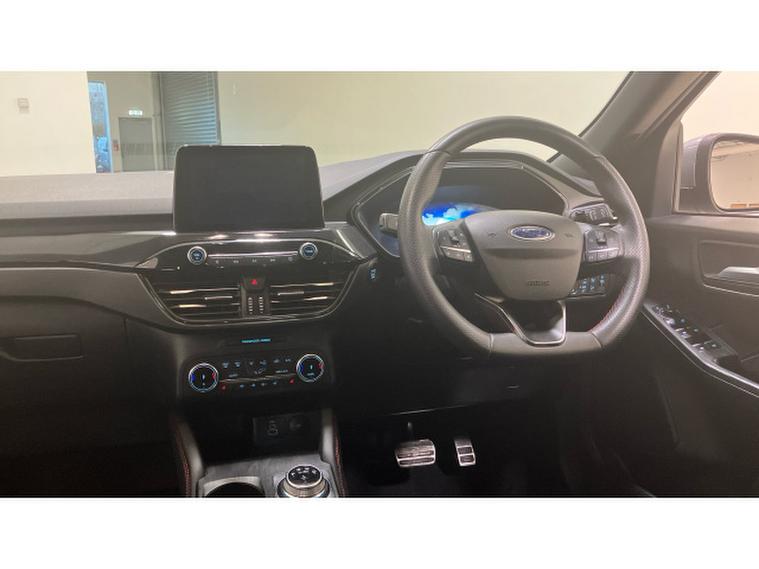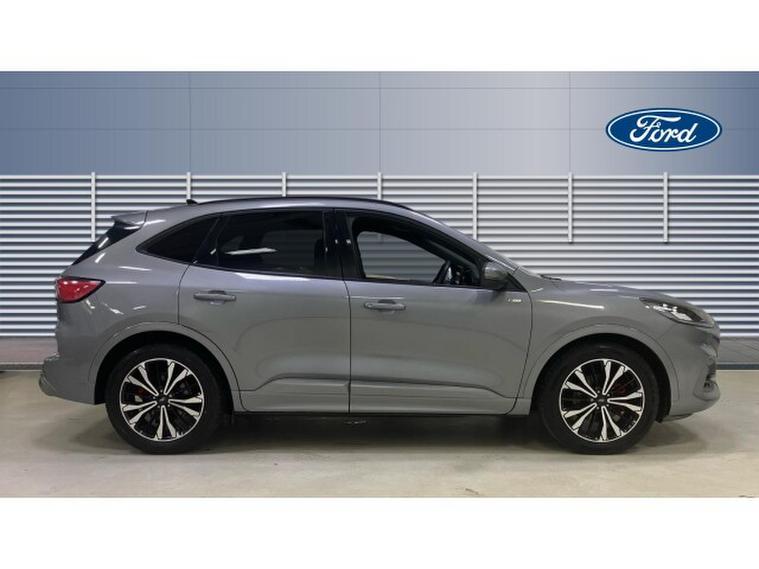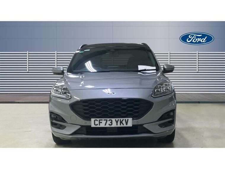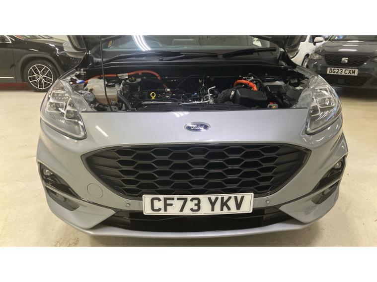 Ford Kuga 2.5 FHEV ST-Line X Edition 5dr CVT Hybrid Estate, , Step into the future of family motoring with this striking 2023 Ford Kuga ST-Line FHEV in Solar Silver, a car that blends electrified efficiency with bold sporting style. Ford's ST-Line models have always brought attitude to the SUV world, but this self-charging hybrid elevates the experience with seamless performance, smart technology and head-turning presence. This gives the Kuga a purposeful, modern edge, beautifully complemented by ST-Line body styling, sleek LED lighting and athletic lines that make this SUV look ready for anything. Inside, the cabin carries the same dynamic flair, with supportive sports seats, premium materials and Ford's latest digital interfaces placing everything at your fingertips. Technology is where this 2023 ST-Line X FHEV really shines. The wireless Apple CarPlay system connects instantly, letting you access apps, music and navigation without a cable in sight. Manoeuvring is made effortless thanks to a crisp rear camera and parking sensors, giving you full confidence in every tight car park or narrow street. On the open road, cruise control brings true serenity, maintaining distance and speed with impressive intelligence, while lane keep assist helps keep long-distance travel smooth and secure. The hybrid system works quietly in the background, delivering petrol power and electric assistance in perfect harmony. The result is strong, refined performance with excellent fuel efficiency, ideal for both city driving and motorway adventures.